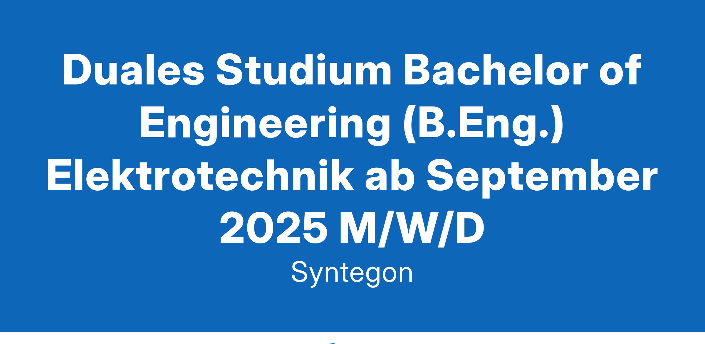 Duales Studium Bachelor of Engineering (B.Eng.) Elektrotechnik ab September 2025 M/W/D