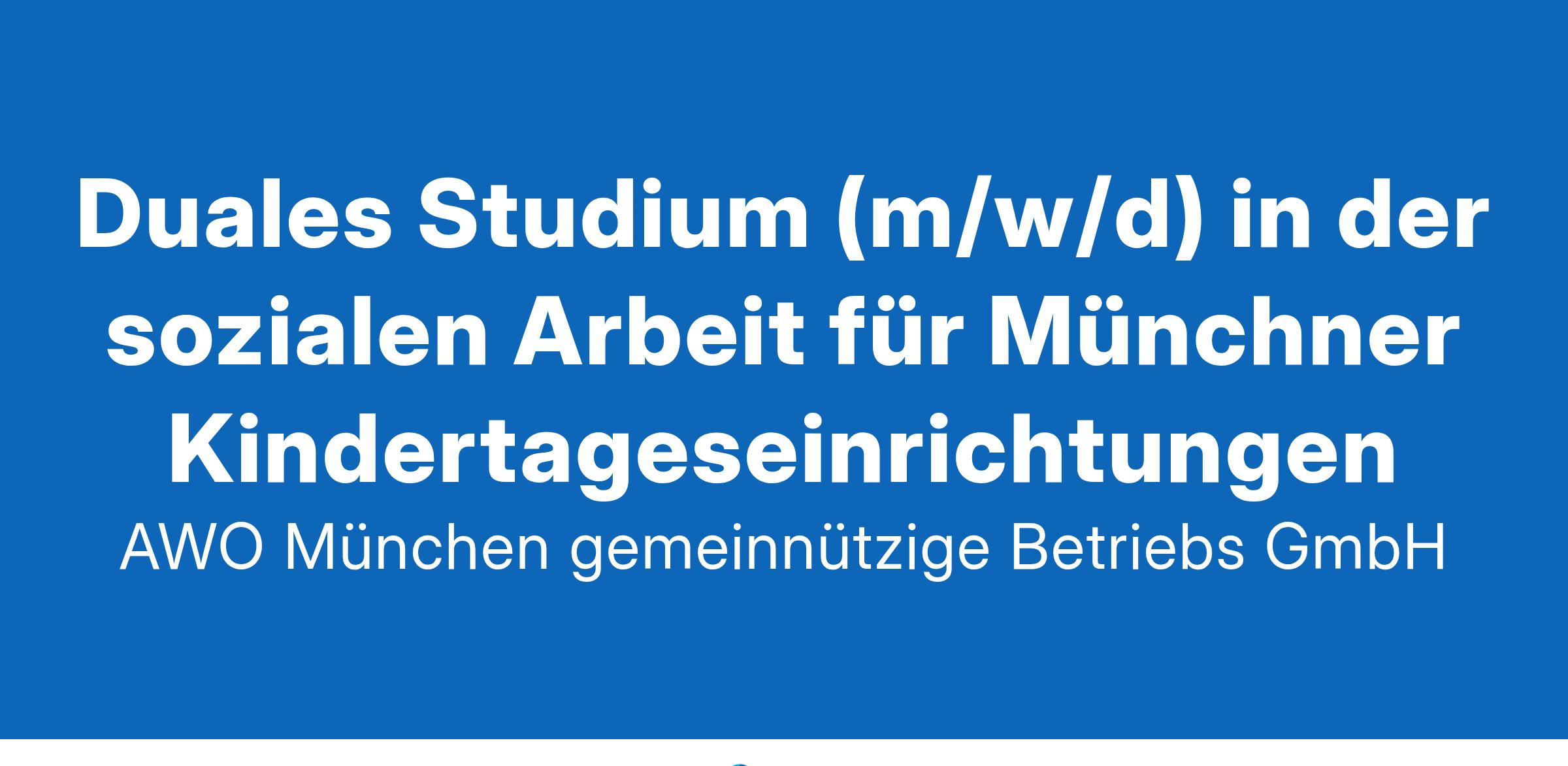 Die AWO München-Stadt ist in vielen Bereichen sozialer Arbeit in München aktiv. In der "Weltstadt mit Herz" trägt sie dazu bei, dass sich Familien, Jugendliche, Senior*innen, Migrant*innen und Menschen mit sozialen, beruflichen oder psychischen Problemen wohl fühlen und einen Platz in der Gesellschaft finden. Unsere wesentliche Zukunftsaufgabe ist die Festigung und der Ausbau der AWO als soziales Dienstleistungsunternehmen.Willst du unser Team bei dieser Herausforderung unterstützen? Wir suchen dich als Dualer Student (m/w/d) für unsere Münchner KindertageseinrichtungenEinsatzort: Gravelottestraße 8, 81667 München, München