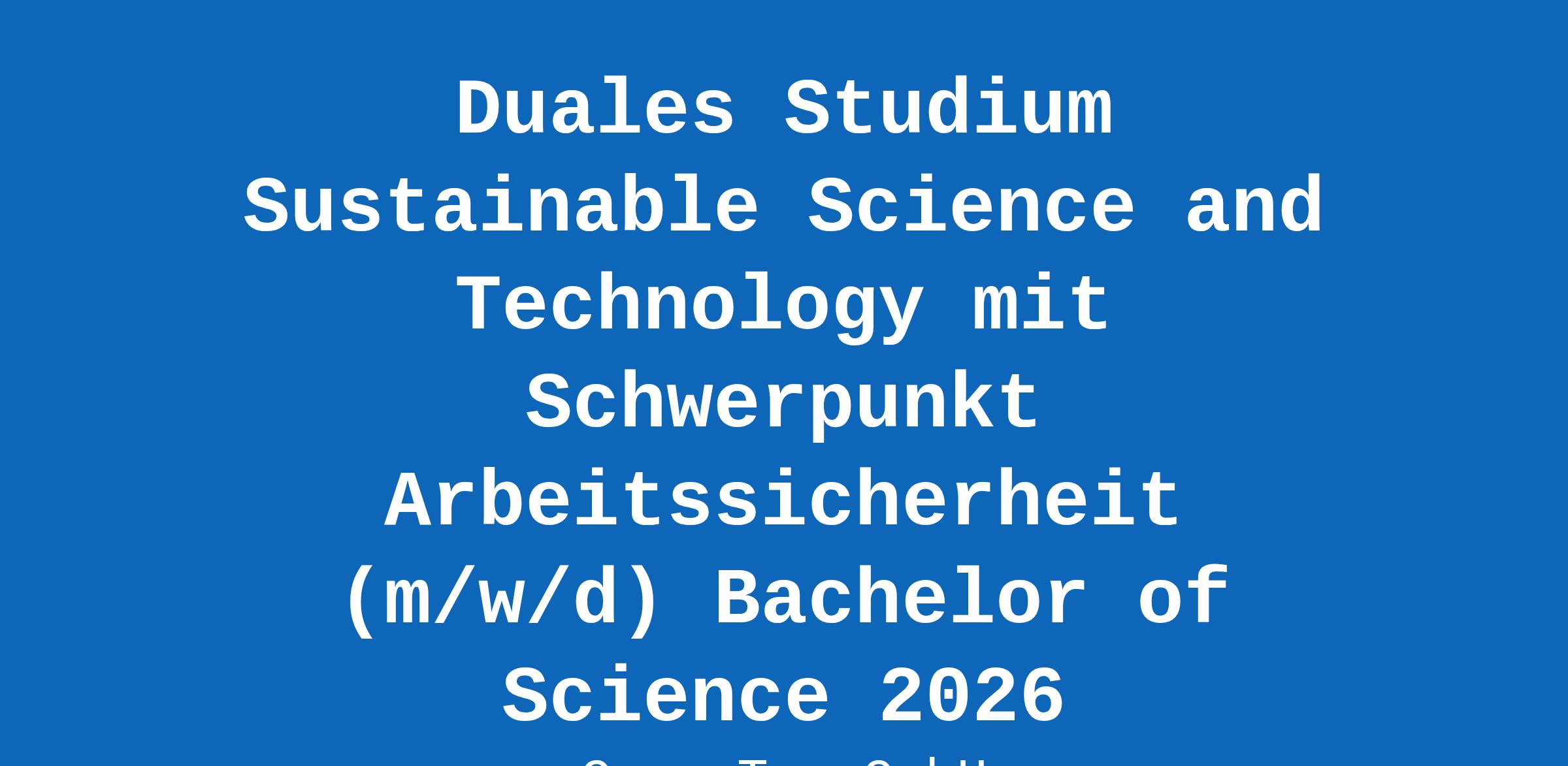 Duales Studium Sustainable Science and Technology mit Schwerpunkt Arbeitssicherheit (m/w/d) Bachelor of Science 2026