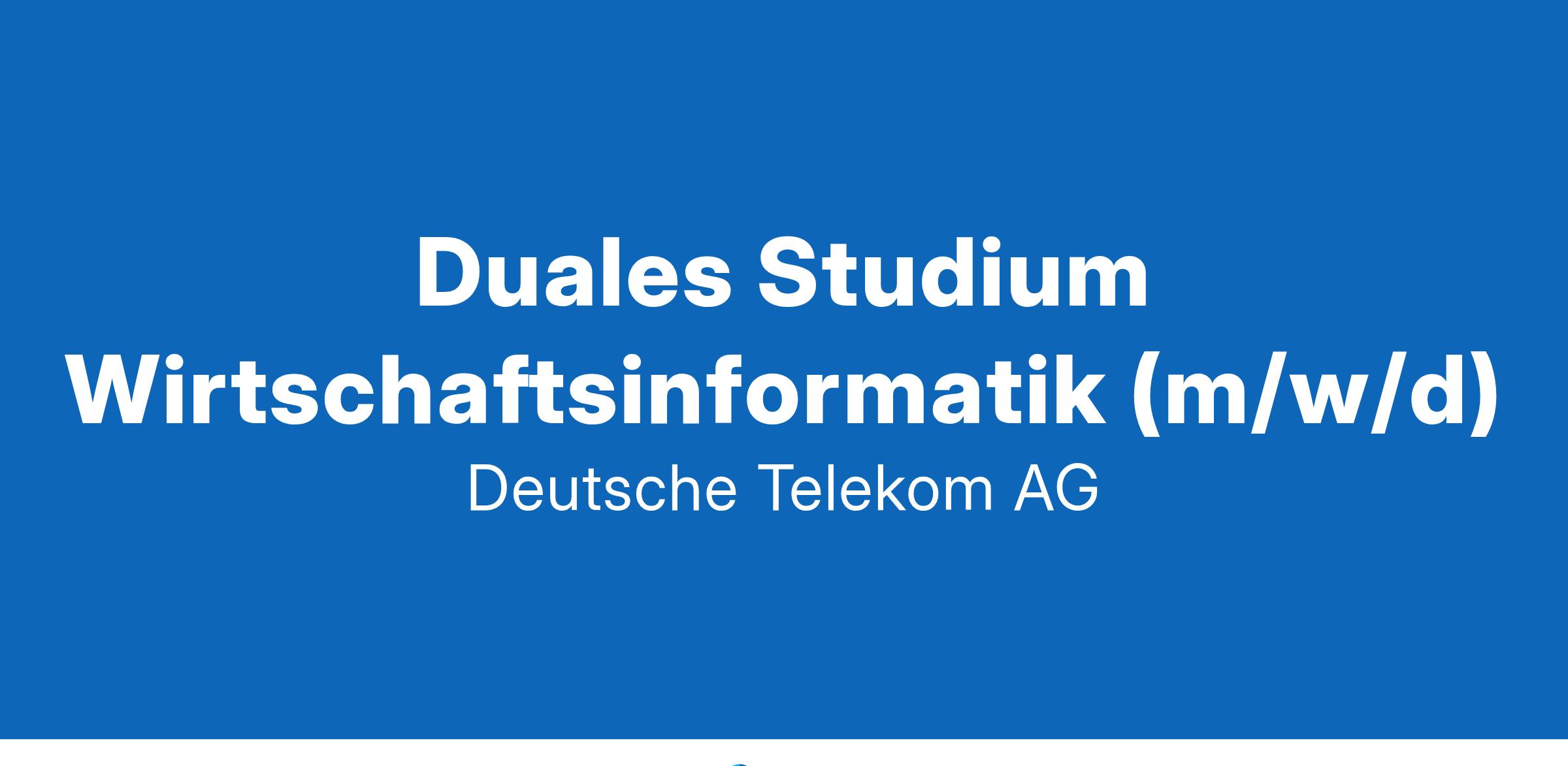 Aufgabe In unserem dualen Studiengang Bachelor of Science in Wirtschaftsinformatik lernst du IT-Projekte in einem modernen Technologiekonzern umfassend zu planen, steuern und erfolgreich abzuschließen. In deinen Studien- und Praxisphasen werden dir dafür die notwendigen IT- sowie Informatikkenntnisse, Hintergrundwissen der BWL und Projekt- und Prozessmanagementfähigkeiten vermittelt. In den 3 Jahren und 6 Monaten Studium bist du pro Woche für 2 Tage an der FOM-Hochschule und die restlichen 3 Tage in deiner Telekom-Abteilung eingesetzt. Diese Studieninhalte erwarten dich u.a.: Programmieren und Softwareentwicklung Betriebswirtschaft, Management, Recht Datenbankmanagement, -strukturen und Geschäftsprozesse Detailliertere Informationen über die gesamten Studieninhalte findest du hier. Mögliche Einsatzfelder , in denen du dein Wissen in der Praxis einsetzen kannst, sind z.B. interne und externe IT-Projekte, Beratung und Geschäftsprozessoptimierung. Wenn du jetzt wissen willst, wie wir die digitale Zukunft gestalten und woran wir arbeiten, dann schaue hier in unsere Themenspecials der Deutschen Telekom! Nach erfolgreichem Abschluss deines Studiums kannst du deine erlernten Kenntnisse und Fähigkeiten z.B. als Junior Project Manager (m/w/d), Software Engineer (m/w/d) oder DevOps Engineer (m/w/d) anwenden. Aber hier muss deine Reise nicht enden. Wir haben für unsere Mitarbeitenden ein großes Angebot an verschiedenen Weiterbildungsmöglichkeiten.