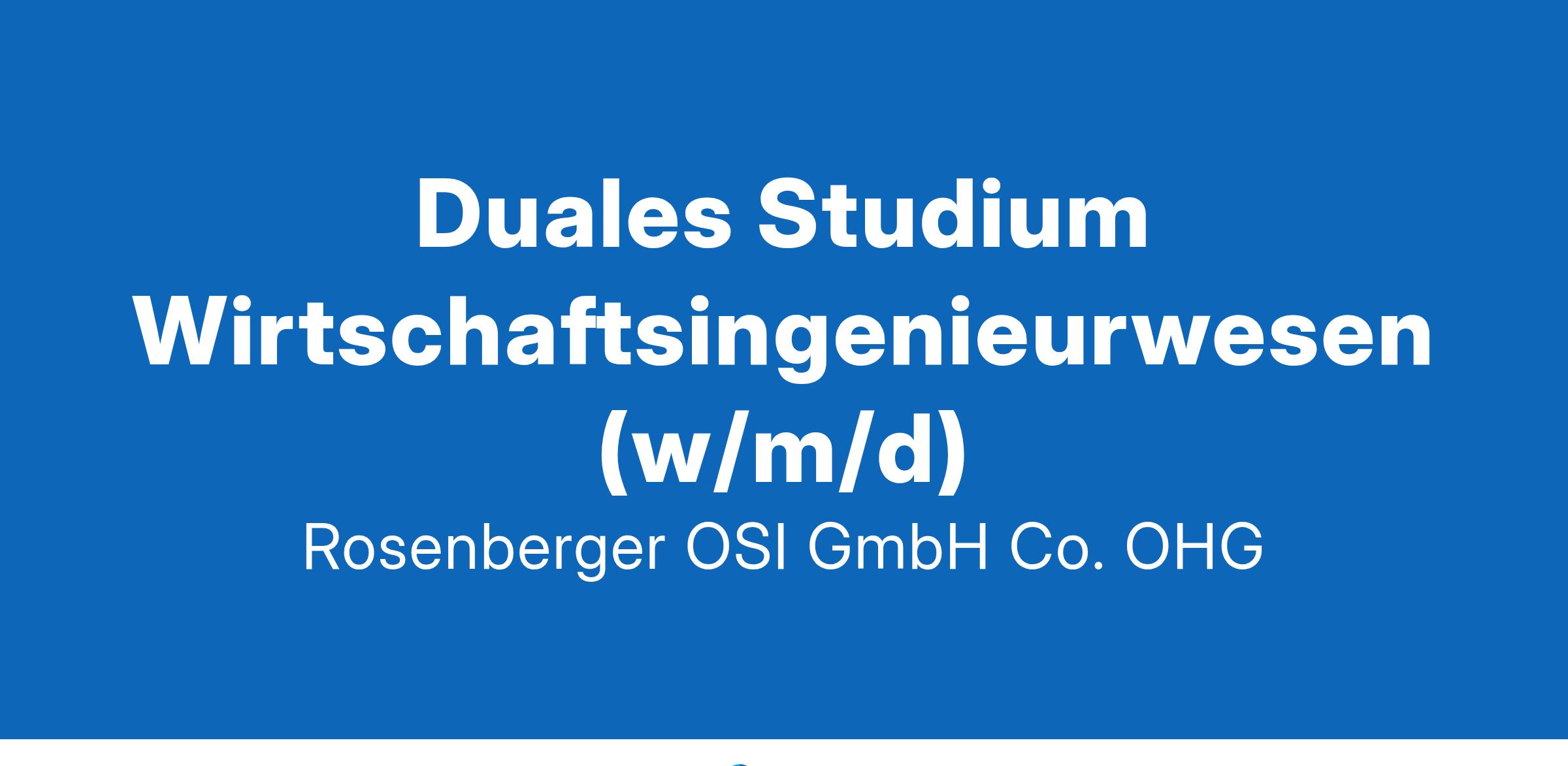 Rosenberger-OSI GmbH & Co. OHG / Praktikum / Sonstiges Deine Aufgaben Du erlernst während des Studiums alle grundlegenden technischen Fertigkeiten und Kenntnisse, unter anderem in den Bereichen Fertigung, Konstruktion und Elektrotechnik, sowie betriebswirtschaftliche Grundlagen in einem internationalen Umfeld Während der Praxisphasen erhältst du vielfältige Einblicke in die unterschiedlichen Unternehmensbereiche bei Rosenberger OSI. Die Theoriephasen finden an der DHBW Heidenheim oder der Technischen Hochschule Augsburg statt Du wirkst bei unterschiedlichen Teilprojekten mit und sammelst erste Erfahrungen im Projektmanagement Weitere Informationen zum Aufbau und Ablauf des dualen Studiengangs Wirtschaftsingenieurwesen findest du auf der Homepage der DHBW Heidenheim oder der Technischen Hochschule Augsburg https://www.heidenheim.dhbw.de/studienangebot/bachelor/technik/wirtschaftsingenieurwesen