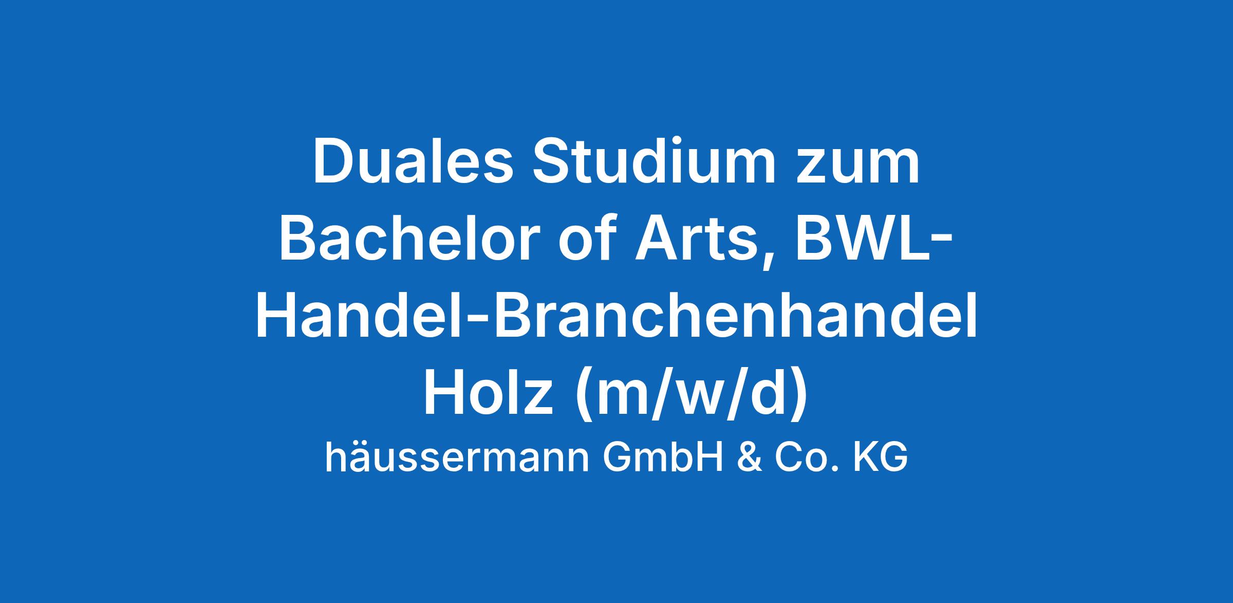 Duales Studium zum Bachelor of Arts, BWL-Handel-Branchenhandel Holz (m/w/d)