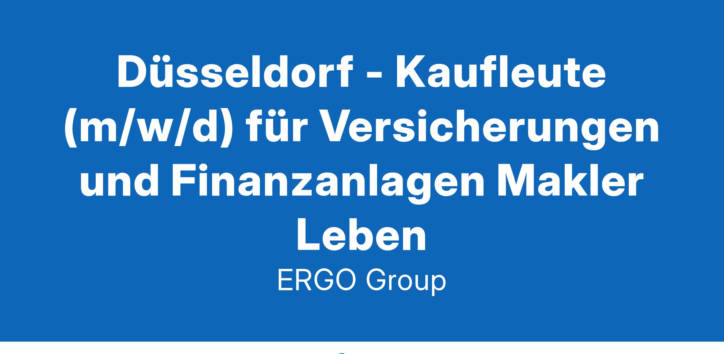 Düsseldorf - Kaufleute (m/w/d) für Versicherungen und Finanzanlagen Makler LebenDu hast Spaß am Umgang mit Menschen? Du arbeitest gern eigenverantwortlich und gibst alles für Deine beruflichen Ziele? Bestens – wir suchen Dich! Komm zu ERGO und schaffe die Basis für eine aussichtsreiche Karriere.Menschen verstehen und gemeinsam Lösungen entwickeln