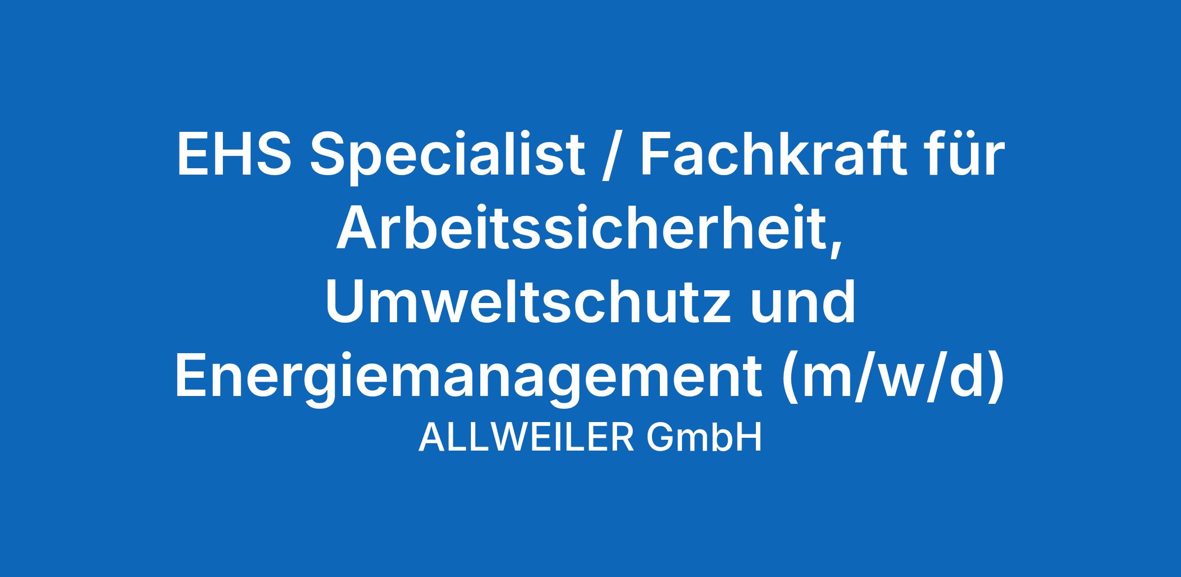 EHS Specialist / Fachkraft für Arbeitssicherheit, Umweltschutz und Energiemanagement (m/w/d)