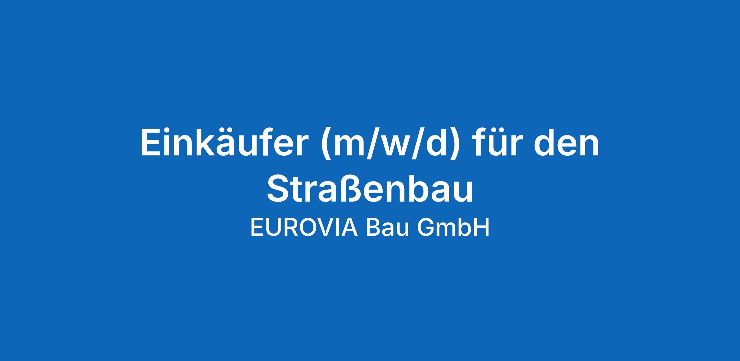 EUROVIA Bau GmbH suchen wir zum nächstmöglichen Zeitpunkt zur Verstärkung unseres Teams in