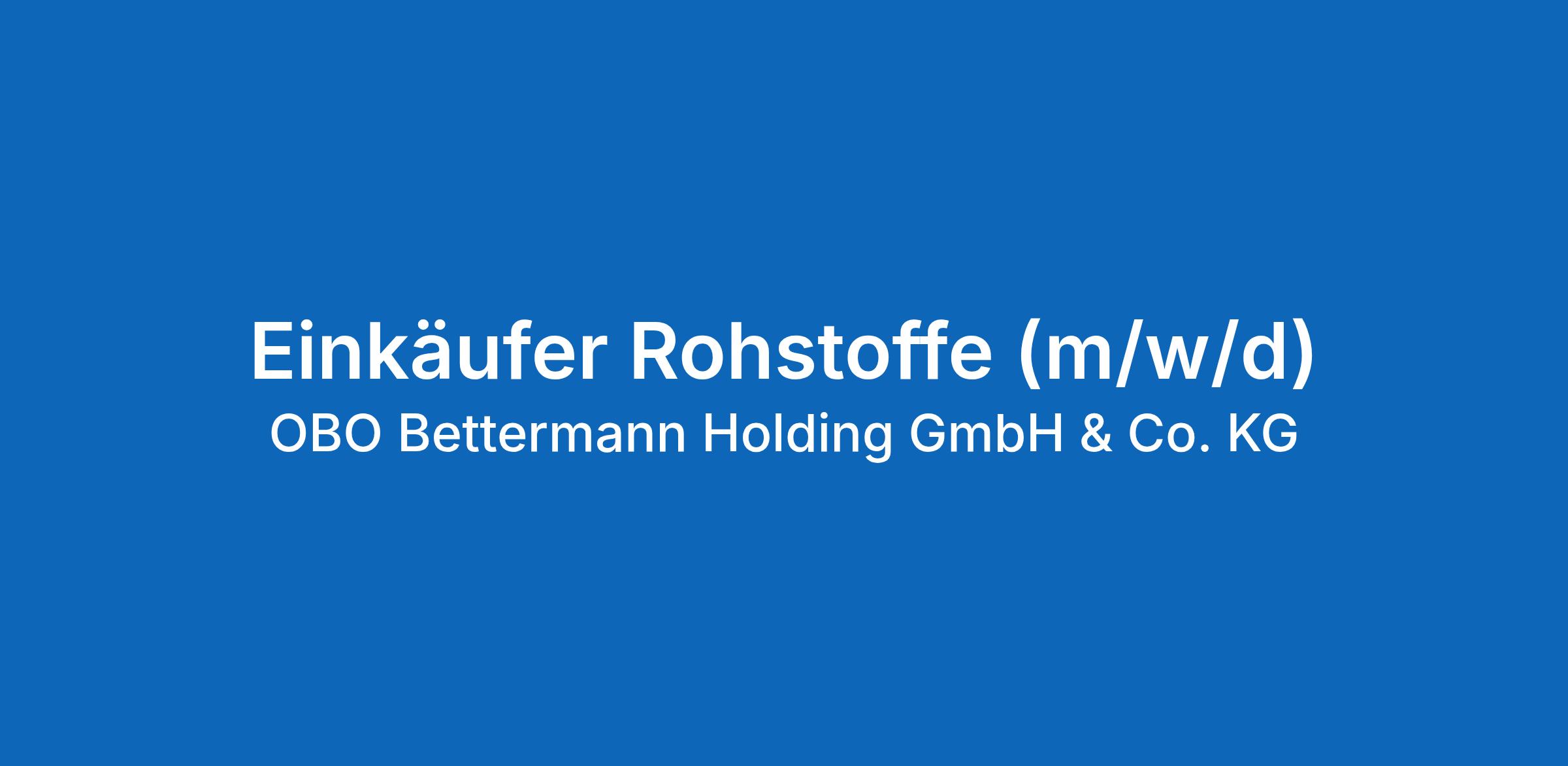 Mit OBO Bettermann beschaffen, bewerten und verhandeln: Als Einkäufer Rohstoffe (m/w/d) sichern Sie die bedarfsgerechte Versorgung, optimieren Kosten und Lieferantenstrukturen und leisten damit einen wesentlichen Beitrag zur wirtschaftlichen und stabilen Materialversorgung.