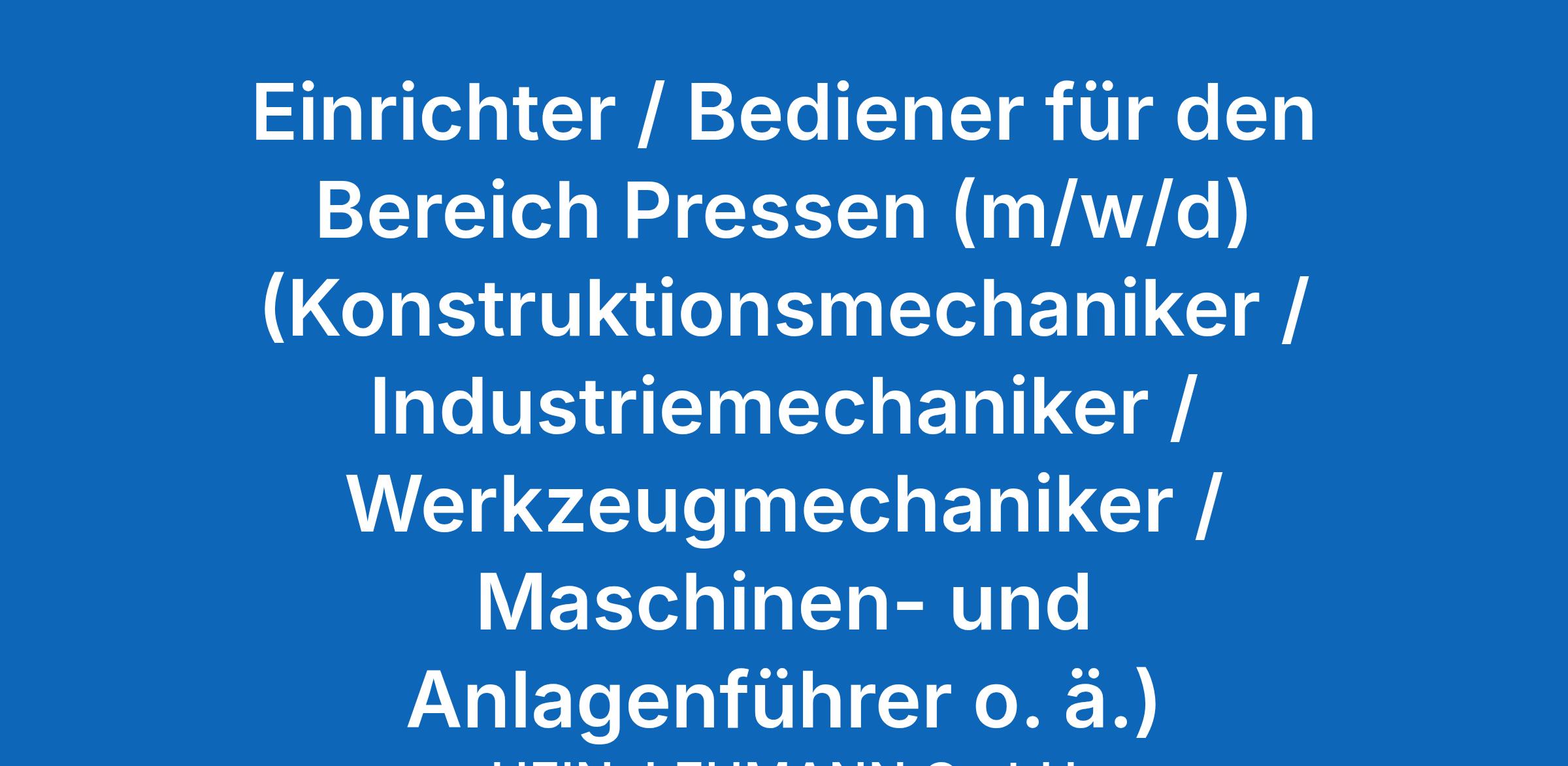 Als Einrichter / Bediener (m/w/d) bereiten Sie Pressvorgänge vor, wechseln Werkzeuge in den Maschinen und beheben einfache Störungen.