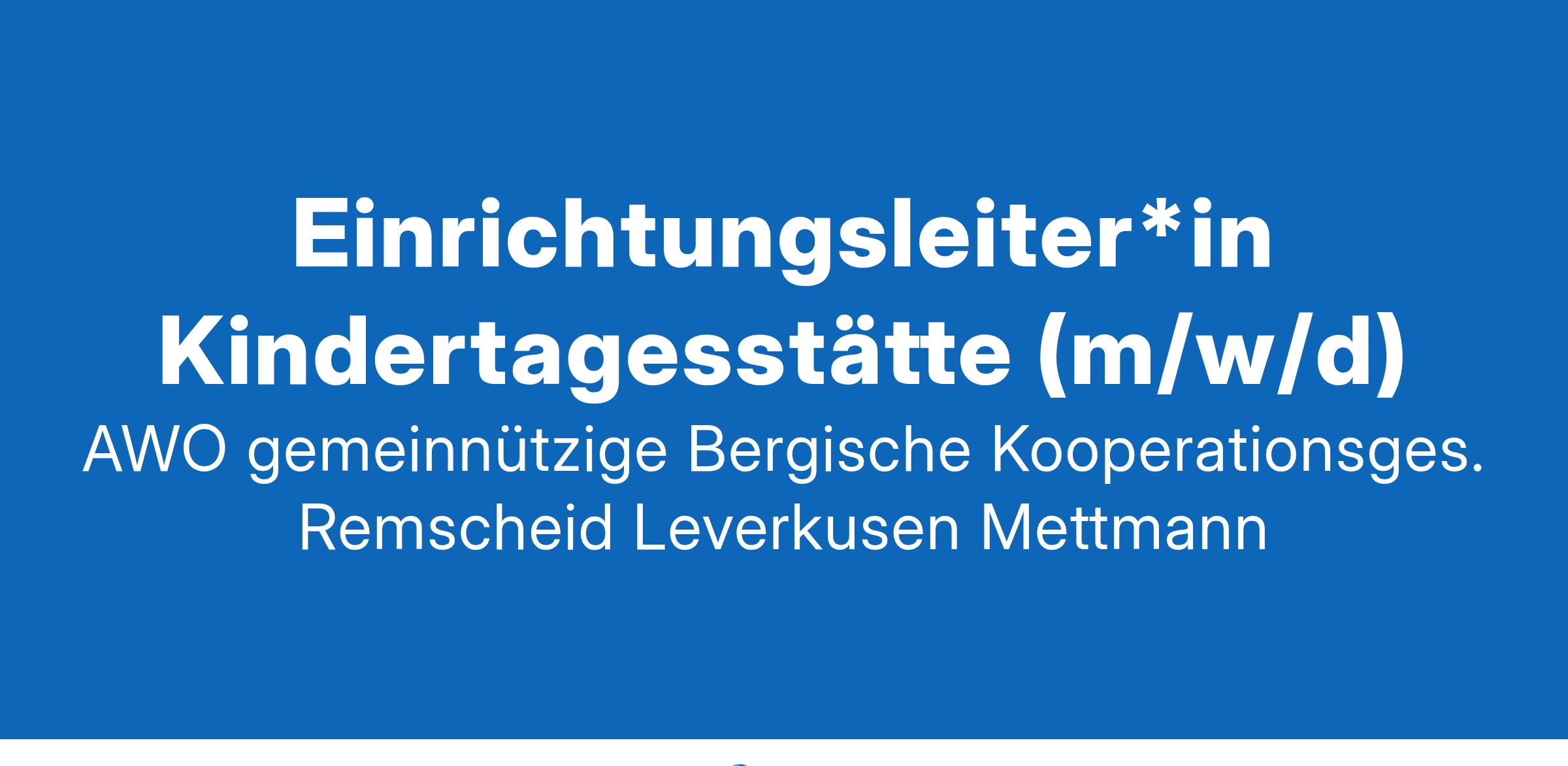 Einrichtungsleiter*in Kindertagesstätte (m/w/d) Komm in unser Team und beweg die Zukunft mit uns! Mit Empathie und Fachwissen steuerst du gekonnt durch den Alltag der Kindertagesstätte und schaffst eine Umgebung, in der sich sowohl das Team als auch die Kinder entwickeln und entfalten können? Dann bist du bei uns genau richtig! Unterstütze unsere Kolleg*innen als Einrichtungsleitung (m/w/d) in Vollzeit in unserer Kindertagesstätte Breitscheider Weg in Ratingen. Das Team freut sich auf dich! Stellenbeschreibung Als Einrichtungsleitung (m/w/d) übernimmst du die Entwicklung und Umsetzung der pädagogischen Konzepte in der Kindertagesstätte. Gestaltung einer bedarfsgerechten Angebotsstruktur der Einrichtung, die sich an den Bedürfnissen der Kinder und Sorgeberechtigten orientiert. Koordination der Arbeit der Mitarbeiter*innen und die fachliche Unterstützung. Außendarstellung und Qualitätssicherung der Einrichtung. Unser Familienzentrum Breitscheider Weg in Ratingen-Lintorf wird von rund 100 Kindern im Alter von vier Monaten bis zum Schuleintritt besucht. Schwerpunkte der Einrichtung liegen auf der Bewegung und Sprache, der Nachhaltigkeit und Familienbegleitung, sowie dem Lernen und Forschen und den Waldexkursionen. Du bringst mit Anerkannte pädagogische Ausbildung z. B. als staatlich anerkannte*r Erzieher*in mit mindestens 5 Jahren Berufserfahrung als pädagogische Fachkraft, ein sozialpädagogisches Studium oder eine vergleichbare Qualifikation Zusatzqualifikation im Sozialmanagement, eine vergleichbare Qualifikation oder die Bereitschaft diese zu erwerben Erfahrungen in der konzeptionellen Arbeit sowie Kenntnisse in MS-Office Ein hohes Maß an Belastbarkeit, Verantwortungsbewusstsein sowie die Fähigkeit auch in Konfliktsituationen stets souverän und lösungsorientiert zu agieren, gepaart mit freundlichem und wertschätzendem Auftreten Erfahrungen im Bereich Inklusion sowie erste Führungserfahrungen als stellvertretende Leitung oder Anleiter*in von Vorteil Wir bieten Dir Unbefristeter Arbeitsvertrag sowie 30 Tage Erholungsurlaub Vergütung nach dem Tarifvertrag AWO NRW EG 9L-EG10L (3582,98-5556,03€/ Monat bei 39 Wochenstunden) zuzüglich einer Jahressonderzahlung Betriebliche Altersvorsorge und vermögenswirksame Leistungen Persönliche und fachliche Weiterbildungs- und Entwicklungschancen Aktive Gesundheitsfürsorge und die Möglichkeit des eBike-Leasings (nach deiner erfolgreichen Probezeit) Schutz- und Rechtekonzept Mitgestaltung der Zukunft und innovative Umsetzung pädagogischer Konzepte Nachhaltigkeitskonzept Persönliche Wertschätzung, Zusammenarbeit auf Augenhöhe und ein gutes Arbeitsklima Enge Begleitung durch unser Fachberatungsteam Eckdaten Nummer: 127735 Erstelldatum: 07.01.2025 Fachbereich: Einrichtungen für Kinder und Jugendliche Einrichtung: Familienzentrum Breitscheider Weg, Breitscheider Weg 35, 40885 Ratingen Region: Nordrhein-Westfalen / Kreis Mettmann Zum / ab: 01.03.2025 Festanstellung Vollzeit Gehalt: Tarifvertrag AWO NRW EG 9L-EG10L*(3582,98-5556,03€) Ansprechpartner*in Bewerbungen über die Karriereseite der AWO Mettmann - www.awo-kreismettmann.de Daniela Podda Bahnstraße 59 40822 Mettmann Telefon: 02104/9707-74 E-Mail: bewerbung@awo-kreis-mettmann.de Internet: www.awo-kreis-mettmann.de