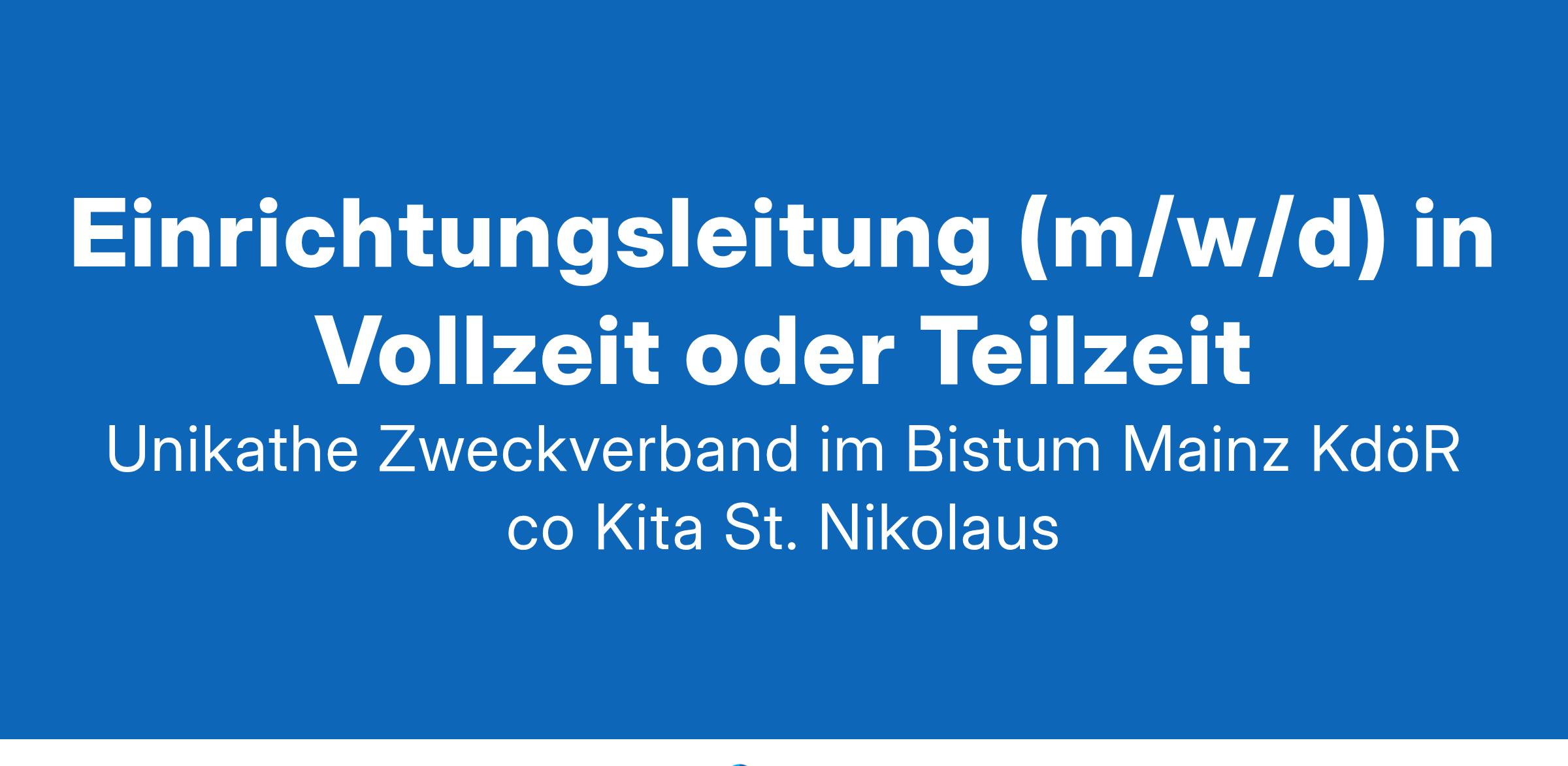 in Voll- und Teilzeit In unserer Kita St. Nikolaus betreuen wir bis zu 75 Kinder in 3 Gruppen im Alter von 3 Jahren bis hin zum Schuleintritt. Wir arbeiten konzeptionell gruppenübergreifend und haben eine Teilöffnung der Gruppen umgesetzt. Unser schönes Haus steht in Hanau Steinheim in zentraler Lage und verfügt über ein großes Außengelände sowie eine direkte Bahnanbindung. Das Haus gehört zur Kath. Kirchengemeinde St. Nikolaus und versteht sich als aktiver Teil der Gemeinde. Wir orientieren uns an den Leitlinien und Werten des christlichen Menschenbildes. Unser Erziehungsbild ist ganzheitlich und von einer partizipativen Grundhaltung geprägt. Die Kita zeichnet sich durch ein motiviertes und engagiertes Team, ein sehr gutes Betriebsklima, aktive Eltern und einer gut fundierten Pädagogik aus.Was wir erwarten: abgeschlossene Ausbildung sowie berufliche Erfahrung als staatlich anerkannte/-r Erzieher/-in, Sozialpädagoge/-in oder in einer vergleichbaren anerkannten Ausbildung als pädagogische Fachkraft Zugehörigkeit zur katholischen Kirche Gute Kenntnisse bei der Textbearbeitung bzw. den gängigen Anwendungen (MS-Word/-Excel/-PowerPoint), Kita-Plus Kenntnisse sind von Vorteil Personal- und Teammanagement mit Vorbildhaltung bezogen auf unsere Konzeption, das Leitbild sowie unsere christlichen Grundwerte Begleitung der Mitarbeiter/-innen und Pflege eines wertschätzenden und partnerschaftlichen Arbeitsklimas verbunden mit einer positiven Feedback-Kultur Engagement bei der Einhaltung und Weiterentwicklung unseres pädagogischen Konzepts im Einklang mit dem Hessischen BEP Enge Zusammenarbeit mit unserer päd. Fachberatung, um den individuellen Förderbedarf der Kinder gezielt umzusetzen Planung und Reflektion der päd. Arbeit mit dem Team sowie die gemeinsame inhaltliche und qualitative Weiterentwicklung Pflege einer professionellen Erziehungspartnerschaft mit den Eltern bzw. dem Elternbeirat Verantwortung für die Personaleinsatzplanung und Belegung der verfügbaren Plätze in Abstimmung mit dem Träger Was Sie erwartet: Vergütung gem. AVR des Dt. Caritasverbandes Eingruppierung in S 15 TVöD SuE AVR Kirchliche Zusatzversorgung (Betriebsrente) Anerkennung von Vorzeiten möglich 30 Tage Urlaub (bei einer 5-Tage-Woche) Fortbildung- und Weiterbildungsmöglichkeiten Leitungssupervision und Coaching Möglichkeit zu Exerzitien, Besinnungstage und Bildungsurlaub Wertschätzende Arbeitsatmosphäre Sie sind interessiert – Dann freuen wir uns auf Ihre schriftliche Bewerbung!Per E-Mail: