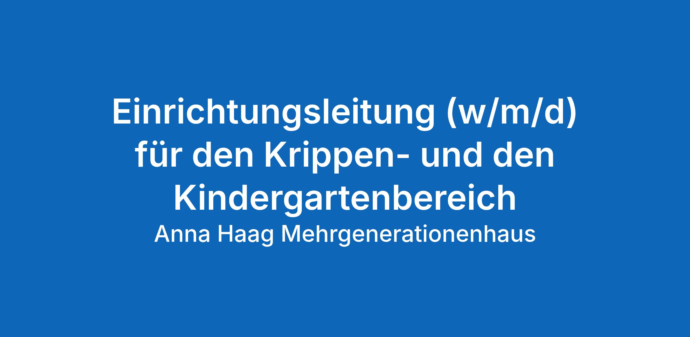 Bei uns erwartet Sie eine vielseitige Aufgabe in unserer Kindervilla Anna Haag, die zum Anna Haag Mehrgenerationenhaus gehört. Sie verfügt über ein weitläufiges Außengelände und einen naturnahen Garten. Wir begleiten 55 Kinder im Alter von null bis sechs Jahren in ihrer Entwicklung in vier Gruppen in der Kindertagesstätte und Krippe mit intergenerativem und inklusivem Schwerpunkt. Die Idee, eine lebendige Gemeinschaft von Kindern, Senior*innen und jungen Menschen zu bilden, wird in unserem Haus tagtäglich gelebt. Zudem setzt die Kindervilla ein naturpädagogisches Konzept um.