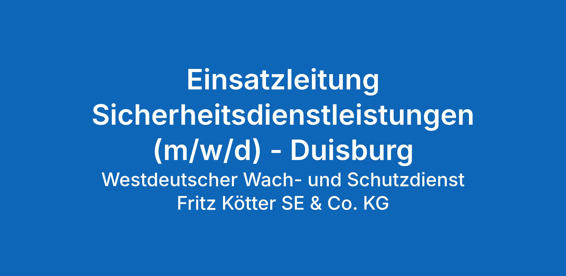 Verstärken Sie unser Team als Einsatzleitung für Sicherheitsdienstleistungen (m/w/d) in Duisburg.