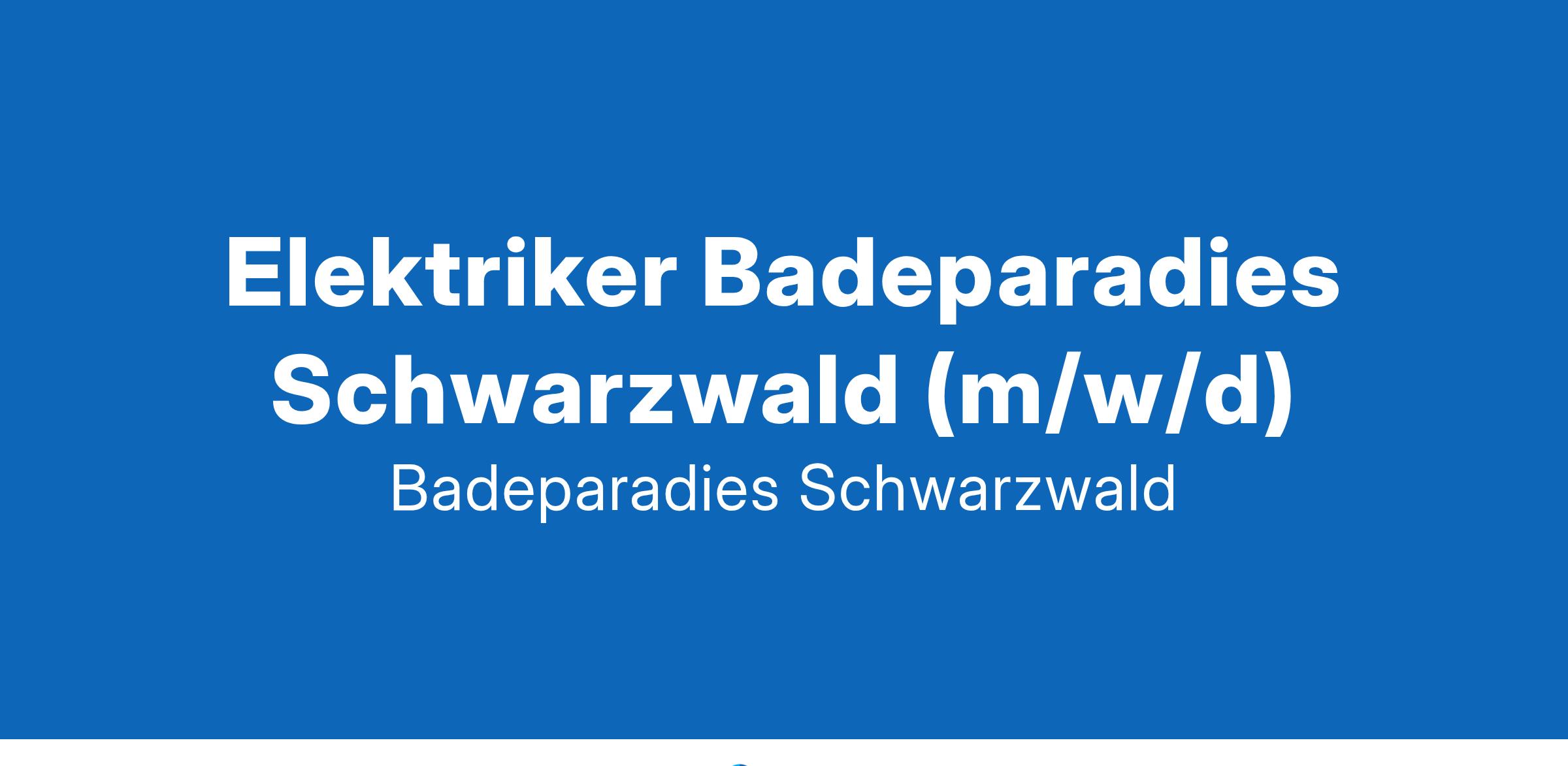 Elektriker Badeparadies Schwarzwald (m/w/d)Befristet, Vollzeit · Titisee-NeustadtDas sind WIR...Wir sind top ausgestattet: Bei uns findest du einen modernen Arbeitsplatz mit innovativer technischer Ausstattung und einem spannenden Aufgabengebiet. Als Teil unserer Unternehmensgruppe kannst du maßgeblich zu unserer Weiterentwicklung und unserem Erfolg beitragen und viele Dinge bewegen. Flache Hierarchien und kurze Entscheidungswege prägen unsere Arbeit und machen uns agil.