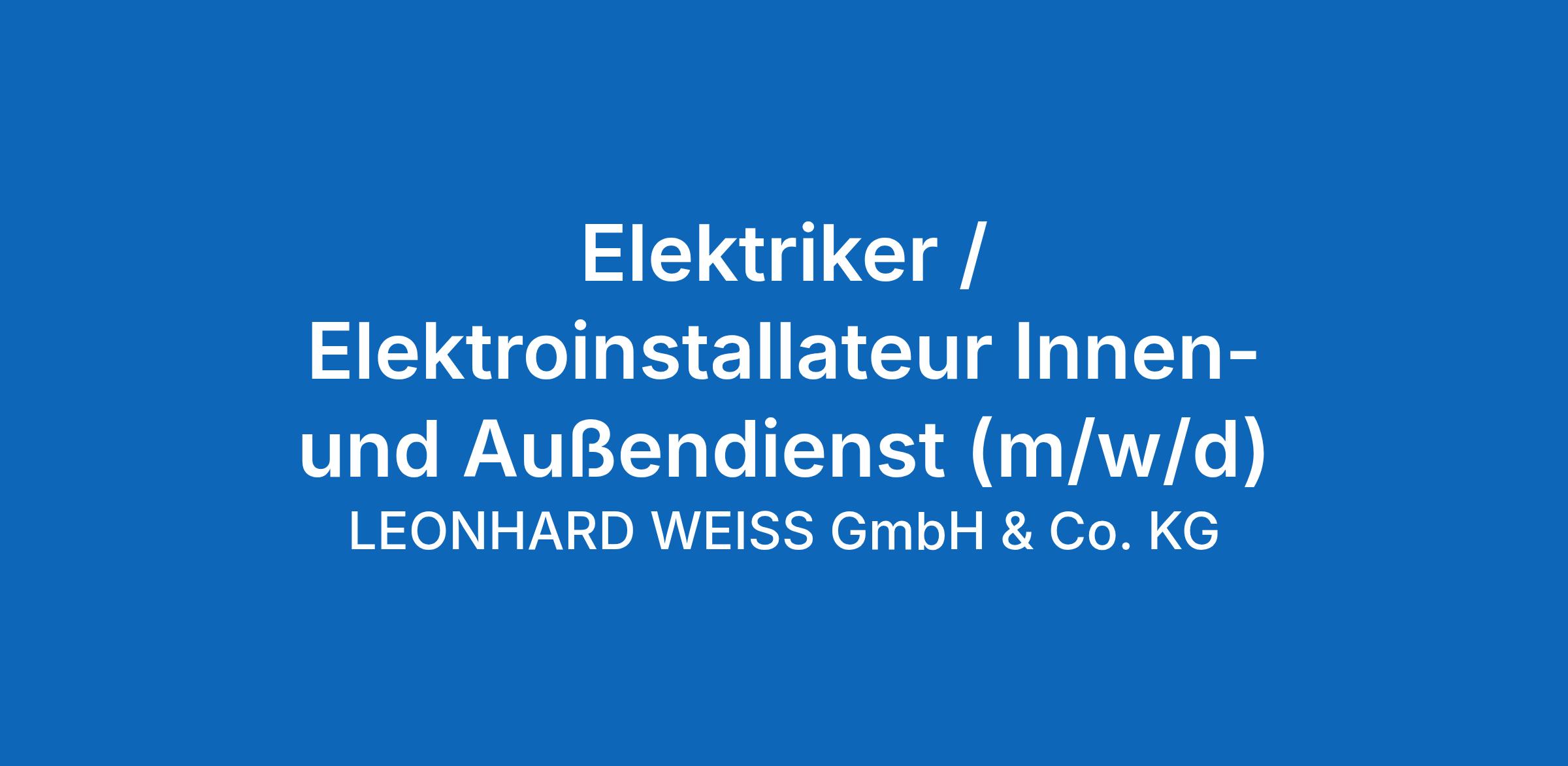 Elektriker / Elektroinstallateur Innen- und Außendienst (m/w/d)