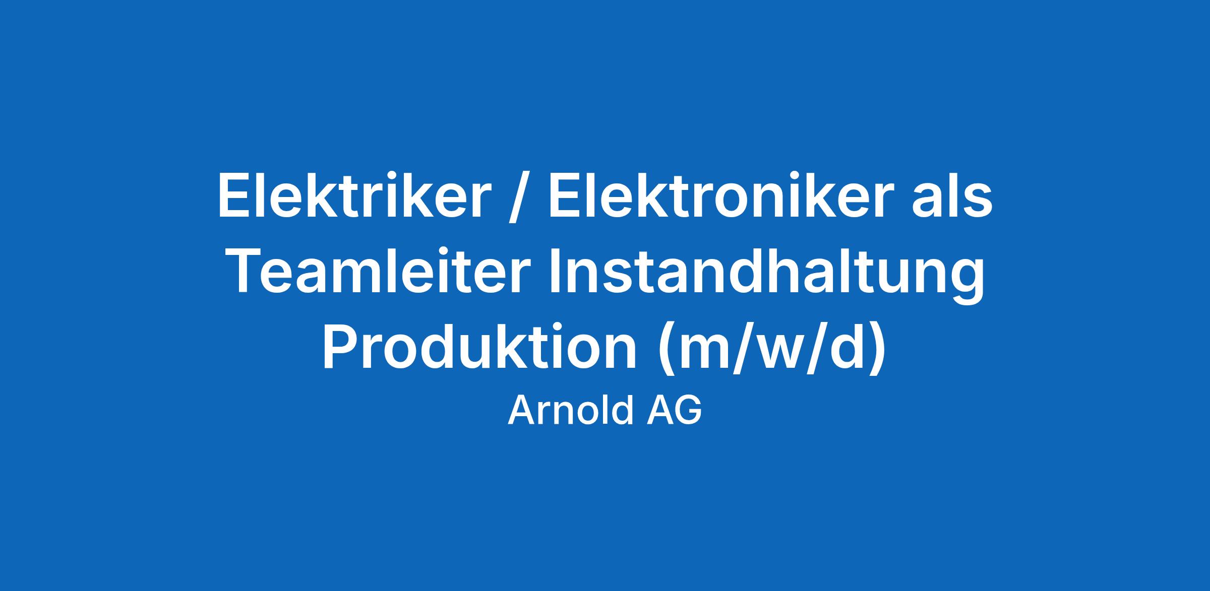 Elektriker / Elektroniker als Teamleiter Instandhaltung Produktion (m/w/d)