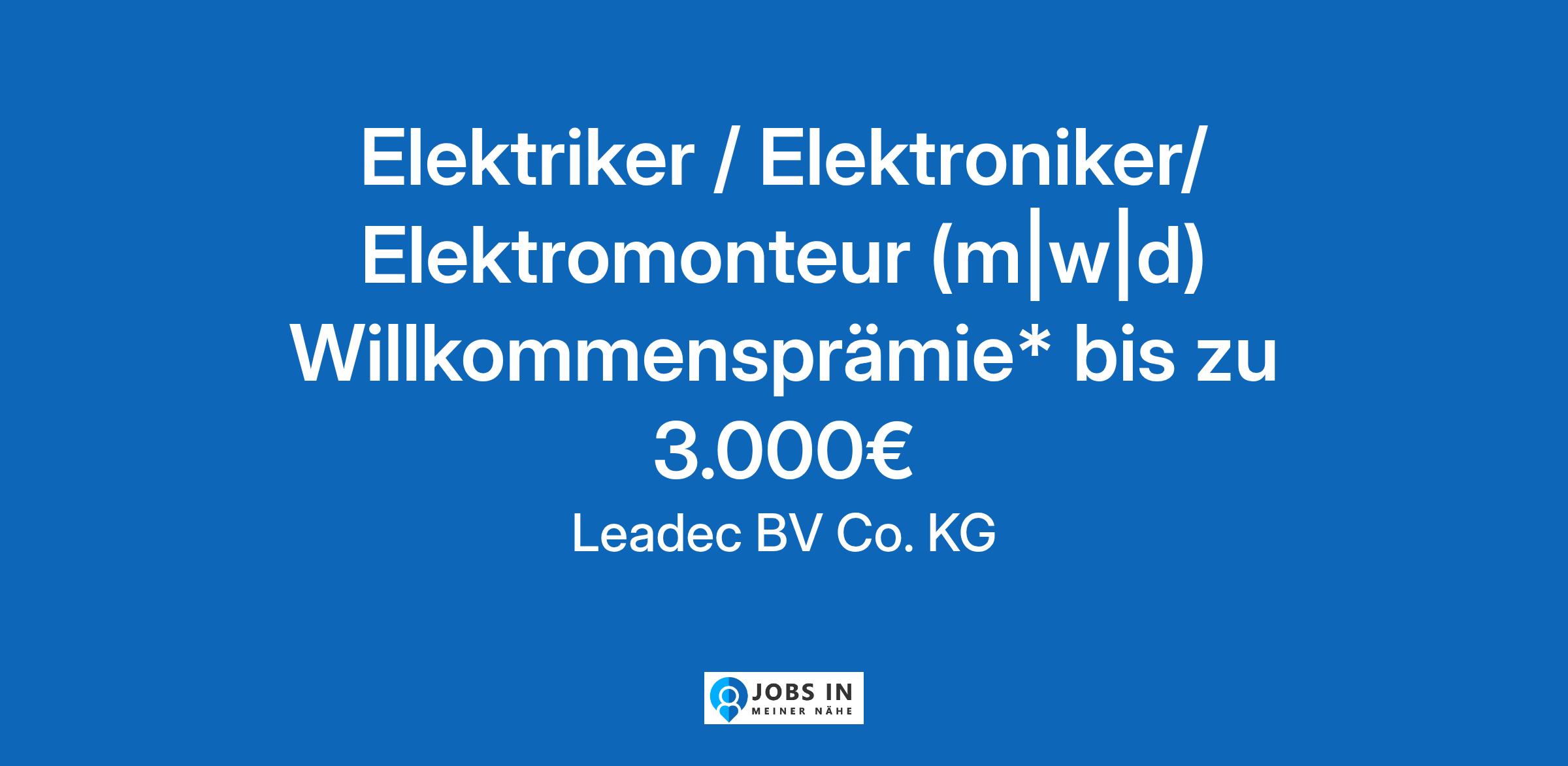 Elektriker / Elektroniker/ Elektromonteur (m|w|d) Willkommensprämie* bis zu 3.000€