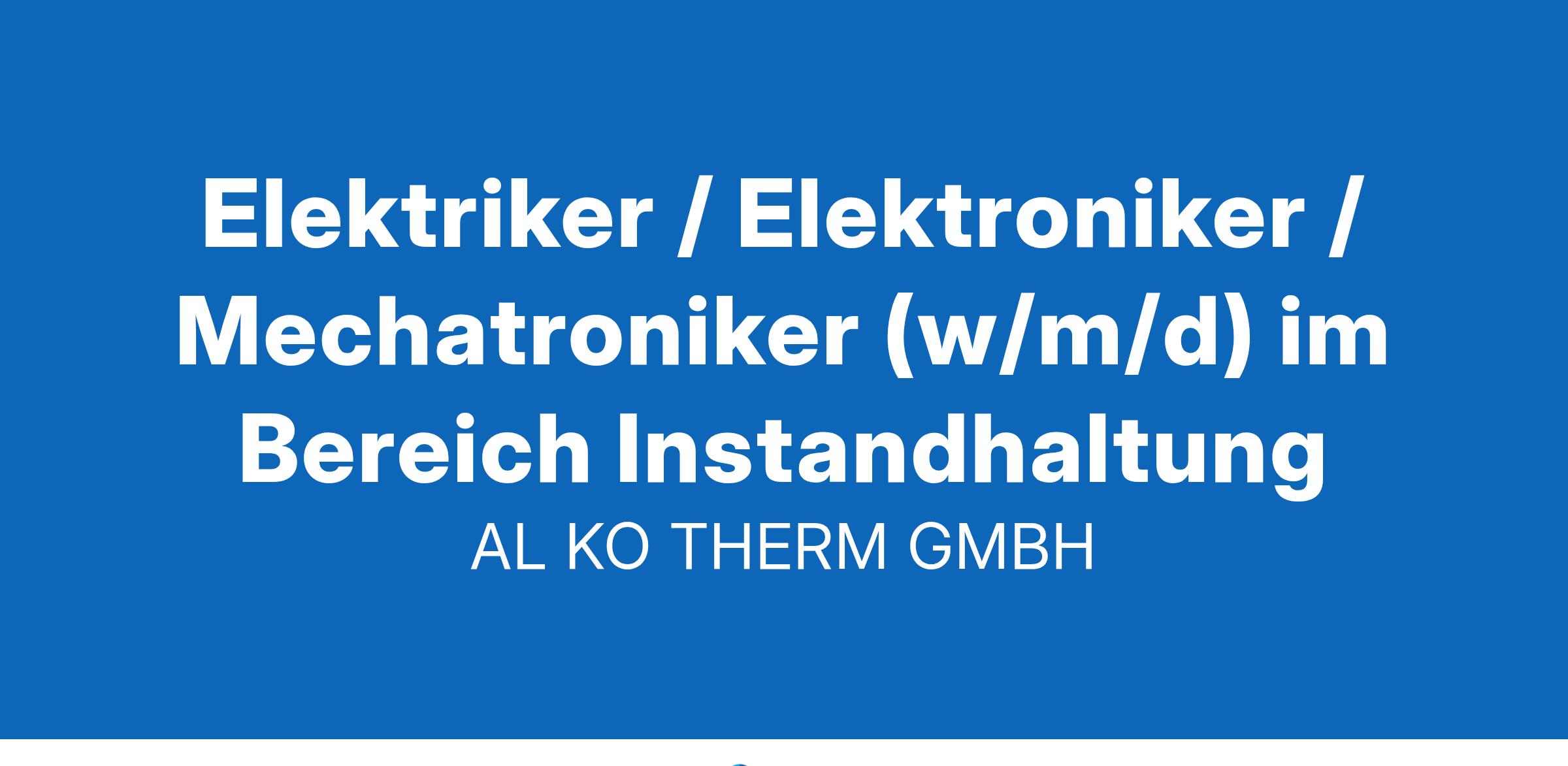 Elektriker / Elektroniker / Mechatroniker (w/m/d) im Bereich Instandhaltung Jettingen-Scheppach unbefristet Vollzeit Bei Trane Technologies und durch unsere Geschäftsbereiche, darunter Trane und Thermo King, entwickeln wir innovative Klimalösungen für Gebäude, Wohnhäuser und Verkehrsmittel, die das Machbare für eine nachhaltige Welt herausfordern. Wir sind ein Team, das es wagt, sich den Herausforderungen der Welt zu stellen und die Möglichkeiten zu sehen, die sich daraus ergeben. Wir glauben an eine bessere Zukunft, wenn wir anderen helfen und es unseren Mitarbeitern ermöglichen, bei der Arbeit und zu Hause erfolgreich zu sein. Wir gehen mutig voran. Als Marke von Trane Technologies, sind wir bei der AL-KO THERM GMBH die Spezialisten für die Herstellung und den Vertrieb von AL-KO Lüftungs- und Absauganlagen mit Sitz in Jettingen-Scheppach bei Augsburg. Die Unternehmensbereiche AL-KO Air Technology und AL-KO Extraction Technology entwickeln und produzieren mit rund 600 Beschäftigten in Deutschland maßgeschneiderte raumlufttechnische Anlagen sowie ein breites Spektrum an industriellen Absauganlagen für die verschiedensten Einsatzmöglichkeiten. Zur Verstärkung suchen wir Sie am Standort Jettingen-Scheppach als Elektriker / Elektroniker / Mechatroniker (w/m/d) im Bereich Instandhaltung Ihre Aufgaben: Selbständiges Durchführen von Störungssuchen, Reparaturen und Wartungsmaßnahmen an unseren Maschinen und Betriebsmitteln Installation von Maschinen, Anlagen und in der Gebäudetechnik Unterstützung bei der Optimierung bestehender Anlagen Durchführung von regelmäßigen Prüfungen an Anlagen, Geräten und Betriebsmitteln im Werk unter Berücksichtigung der geltenden Regeln und Normen Führen von Wartungs- und Inspektionsdokumentationen im SAP Ihre Basis und Ihre Stärken: Abgeschlossene Ausbildung im Bereich Elektrotechnik z. B. als Industrieelektriker (w/m/d), Elektriker (w/m/d), Elektroniker (w/m/d), Mechatroniker (w/m/d) oder vergleichbar erworbene Fachkenntnisse Kenntnisse in der Fehlersuche im Elektrikerbereich Selbständige und sorgfältige Arbeitsweise Teamfähigkeit Gute Deutschkenntnisse in Wort und Schrift Wir bieten Ihnen: AL-KO Seminarprogramm Aus- und Weiterbildung Betriebsarzt Familiäres Arbeitsklima Gute Verkehrsanbindung Kostenloser Wasserspender Parkplatz Vermögenswirksame Leistungen Arbeitskleidung Betriebliche Altersvorsorge Bikeleasing Gesundheitsmaßnahmen Kantine Mitarbeiterevents Urlaubs- und Weihnachtsgeld Wir bieten eine wettbewerbsfähige Vergütung, sowie umfassende Leistungen und Programme, die unseren Mitarbeitern helfen, sowohl im beruflichen als auch im privaten Bereich zu wachsen. Wir sind stolz auf unsere Gewinner-Kultur, die im Kern integrativ und respektvoll ist. Wir teilen die Leidenschaft für den Dienst am Kunden, die Sorge um andere und die mutige Herausforderung, was für eine nachhaltige Welt möglich ist. Marisa Grauer Referentin Personalwesen Fon: 08225/39-2674 AL-KO THERM GMBH alko-airtech.com Genau Ihr Profil? Bitte bewerben Sie sich online unter Angabe Ihrer Gehaltsvorstellung und Verfügbarkeit. Wir freuen uns auf Sie! AL-KO THERM GmbH Hauptstraße 248–250 89343 Jettingen-Scheppach alko-airtech.com