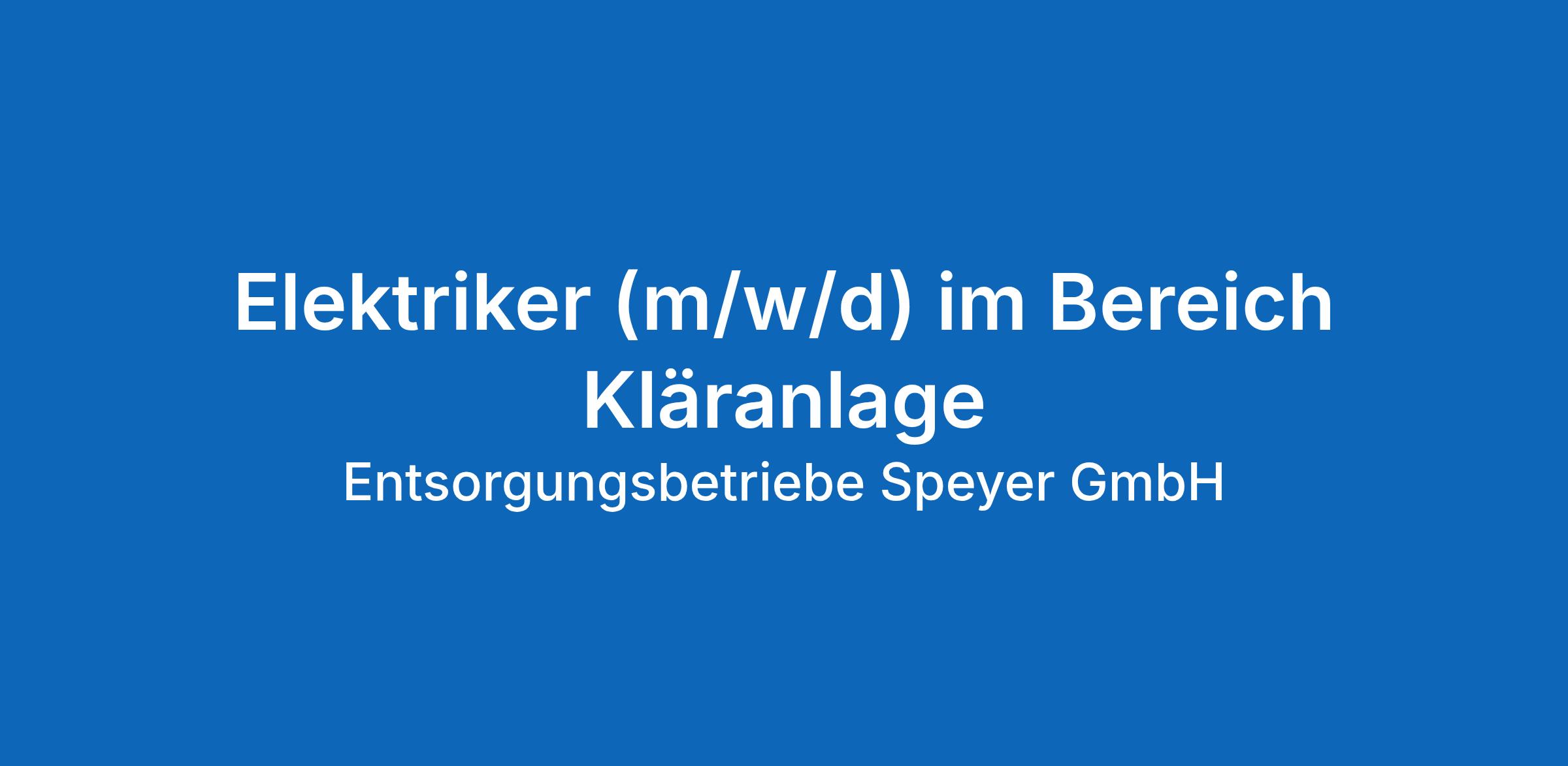 Elektriker (m/w/d) im Bereich Kläranlage