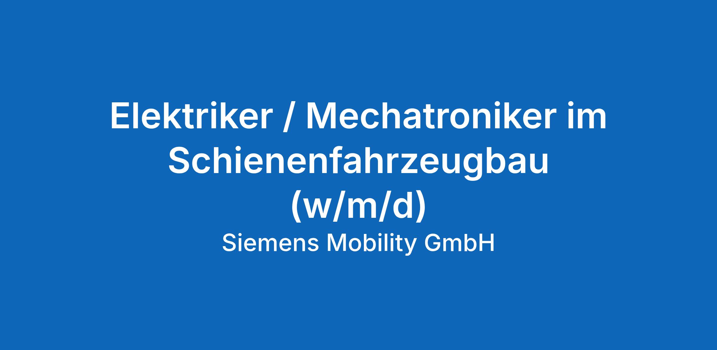 Siemens Mobility ist ein eigenständig geführtes Unternehmen der Siemens AG und seit über 160 Jahren ein führender Anbieter im Bereich Mobilität. Zu unserem Kerngeschäft gehören Schienenfahrzeuge, Bahnautomatisierungs- und Elektrifizierungslösungen, schlüsselfertige Systeme sowie die dazugehörigen Serviceleistungen. Wir waren schon immer sehr innovativ, um Reisen schneller, sicherer und komfortabler zu machen. Heute brauchen wir neue Lösungen für neue Herausforderungen wie den Klimawandel und weltweit steigende Bevölkerungszahlen. Das ist es, was uns antreibt. Deshalb gestalten wir Mobilität mit Leidenschaft und sind immer einen Schritt voraus. Durch Digitalisierung machen wir Infrastrukturen intelligent und schaffen Möglichkeiten, die uns nachhaltig und nahtlos von A nach B bringen. Unsere über 40.000 Mitarbeitende sind Pioniere im Mobilitätswesen, die dabei helfen, die Welt in Bewegung zu halten.