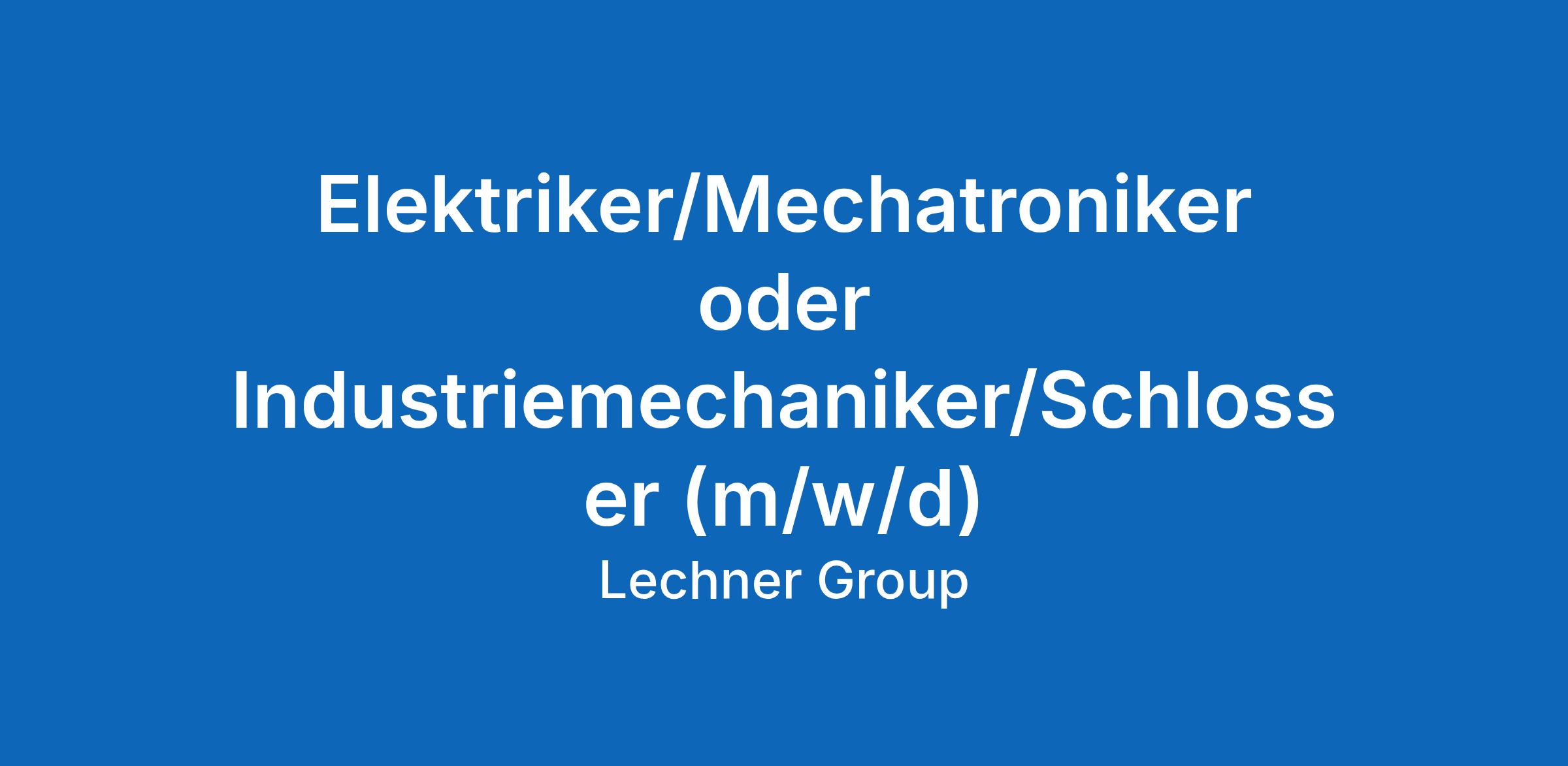 Elektriker/Mechatroniker oder Industriemechaniker/Schlosser (m/w/d)