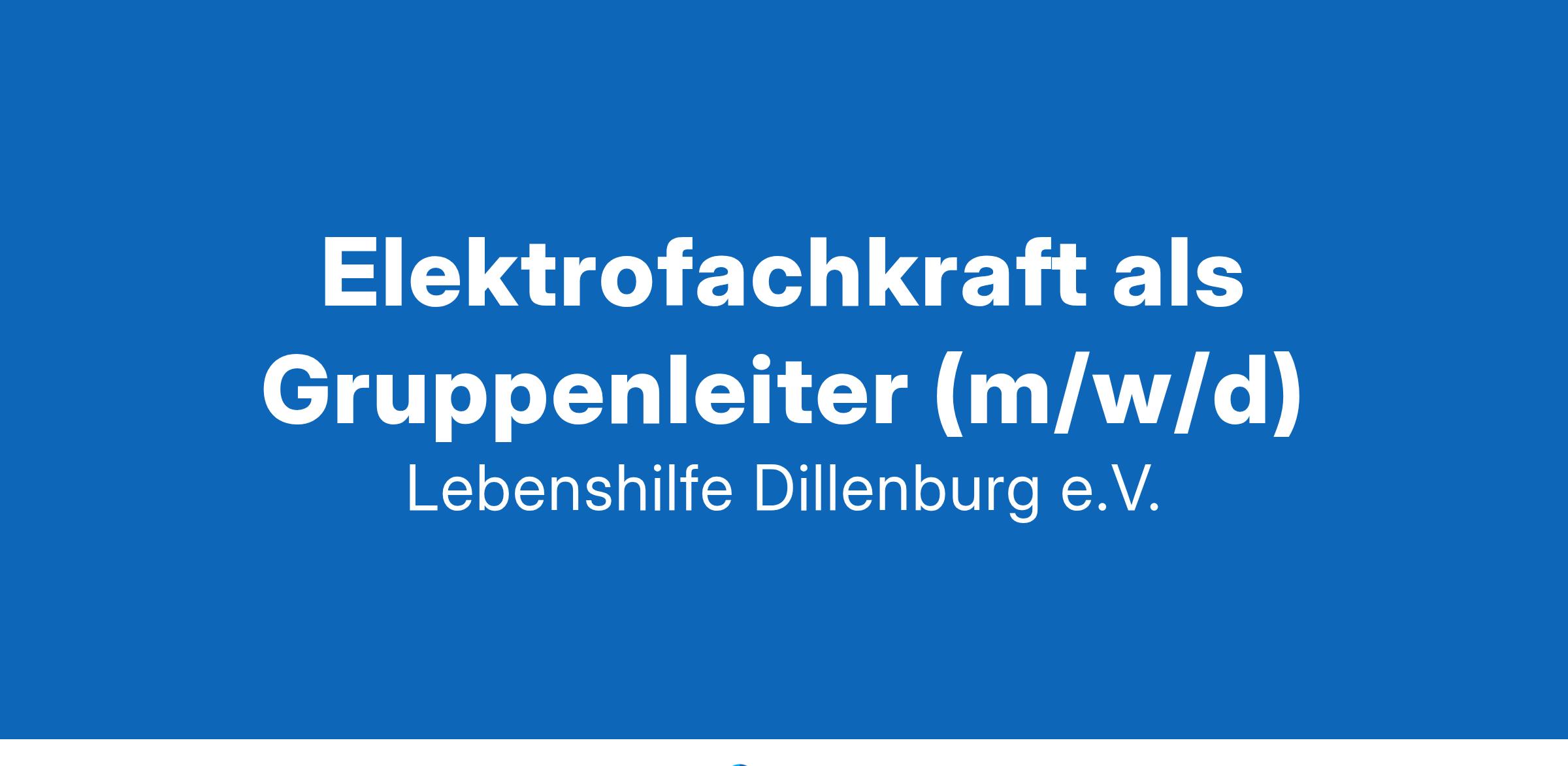 Die LEBENSHILFE Dillenburg e.V. ist Träger verschiedener Einrichtungen der Behindertenhilfe im nördlichen Lahn-Dill-Kreis. Neben stationären und ambulanten Wohnangeboten unterhalten wir mehrere Werkstätten für Menschen mit Behinderungen, einen familienentlastenden Dienst sowie ein Kinderzentrum. Insgesamt sind bei uns ca. 450 Mitarbeiter:innen beschäftigt, die etwa 1200 Menschen betreuen. Die LEBENSHILFE Dillenburg e.V. ist Träger verschiedener Einrichtungen der Behindertenhilfe im nördlichen Lahn-Dill-Kreis. Neben stationären und ambulanten Wohnangeboten unterhalten wir mehrere Werkstätten für Menschen mit Behinderungen, einen familienentlastenden Dienst sowie ein Kinderzentrum. Insgesamt sind bei uns ca. 400 Mitarbeiter:innen beschäftigt, die etwa 1200 Menschen betreuen. Zum nächstmöglichen Zeitpunkt suchen wir eine Elektrofachkraft als Gruppenleiter (m/w/d) Standort: Reha-Werkstatt Haiger, Vollzeit (39 Wochenstunden), unbefristet Was Sie erwartet: Als Gruppenleiter übernehmen Sie die Betreuung und Anleitung von Menschen mit Handicap anhand einer bestehenden pädagogischen Konzeption mit dem Schwerpunkt der beruflichen Entwicklung. Sie gestalten den Betreuungsalltag nach pädagogischen und fertigungsrelevanten Gesichtspunkten. Sie erstellen und pflegen die erforderlichen Förder- und Betreuungsdokumentationen. Sie organisieren und begleiten Praktika. Sie stehen in Kontakt mit den Angehörigen. Sie übernehmen die Fertigungssteuerung der Aufträge in der Arbeitsgruppe und stehen in direktem Kontakt mit unseren Kunden. Was wir erwarten: Eine Ausbildung als Energieanlagenelektroniker, Elektroniker oder Mechatroniker. Freude an der Arbeit mit Menschen mit Handicap, Organisationstalent und die Bereitschaft, in einem multiprofessionellen Kollegenkreis unseren eigenen Ansatz des systemischen Arbeitens umzusetzen. Idealerweise Berufserfahrung in der Betreuung von Menschen mit Handicap. Bereitschaft, Verantwortung zu übernehmen. Teamfähigkeit. Wir bieten Ihnen: Eine Unternehmens- und Führungskultur, die geprägt ist von Akzeptanz, Wertschätzung, gegenseitigem Vertrauen und Respekt. Vielfältige Gestaltungsmöglichkeiten im Rahmen Ihres Verantwortungsbereiches. Hervorragende Rahmenbedingungen: Ihre Vergütung erfolgt nach TVÖD, Sozial- und Erziehungsdienst, mit den tariflich geregelten Zulagen und Zuschlägen und allen weitern Vorteilen des öffentlichen Dienstes, wie z.B. Jahressonderzahlung, Leistungsentgelt, zusätzliche Altersversorgung, Bike-Leasing und die Sicherheit eines seit 60 Jahren in der Region anerkannten Unternehmens. Eine gezielte Förderung Ihrer persönlichen und fachlichen Entwicklung sowie eine strukturierte Einarbeitung und Begleitung. Wir freuen uns darauf, Sie kennen zu lernen. Ihre aussagefähigen Bewerbungsunterlagen senden Sie bitte bis zum 16.02.2025 an: