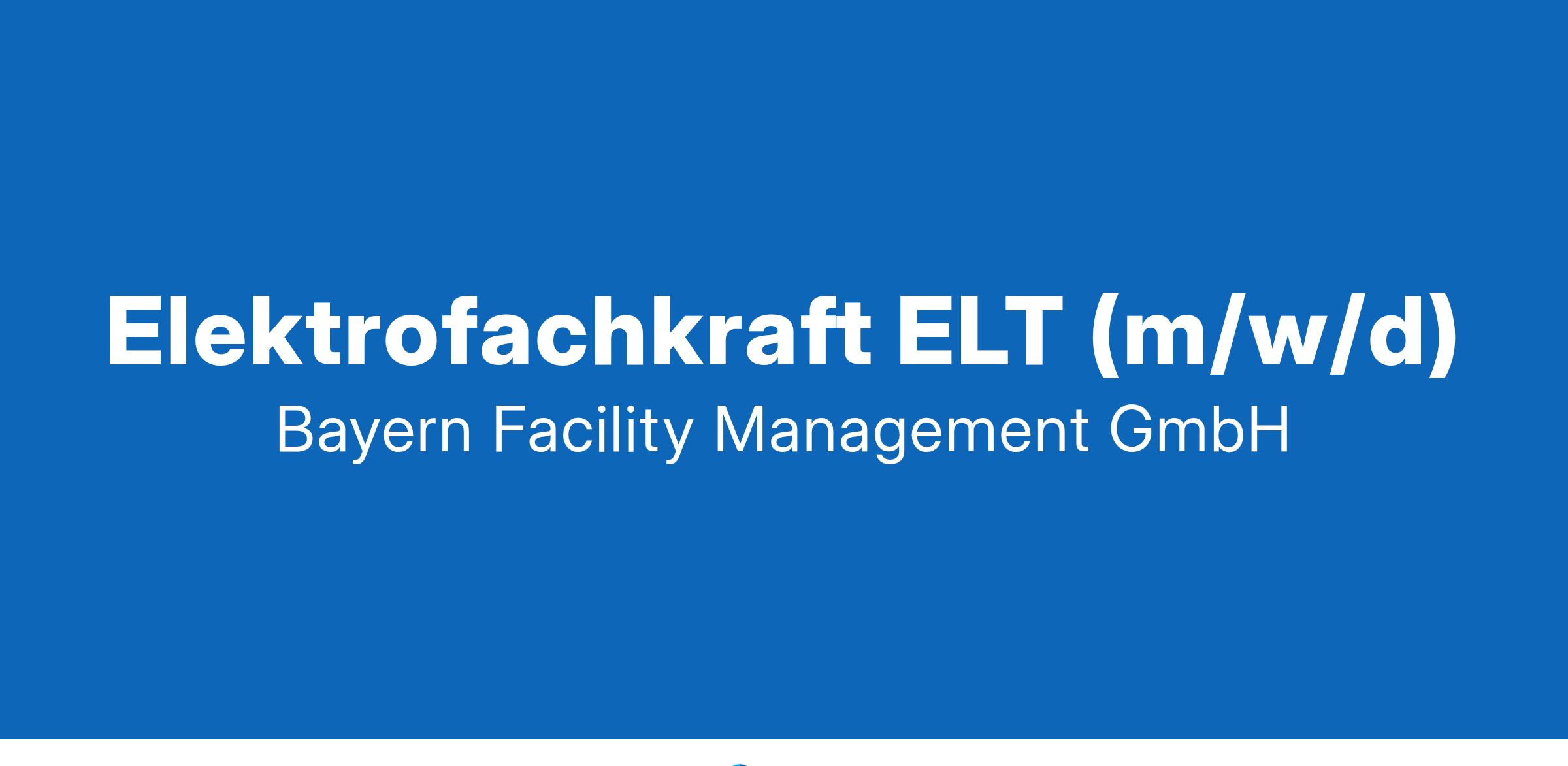 Werden Sie Teil unseres Teams.Elektrofachkraft ELT (m/w/d)Die Bayern Facility Management GmbH mit Firmensitz in München ist ein etabliertes, mittelständisches Unternehmen der Immobilienbranche. Insbesondere im süddeutschen Raum bieten wir über den gesamten Immobilienlebenszyklus hochwertige sowie nachhaltige Dienstleistungen an.