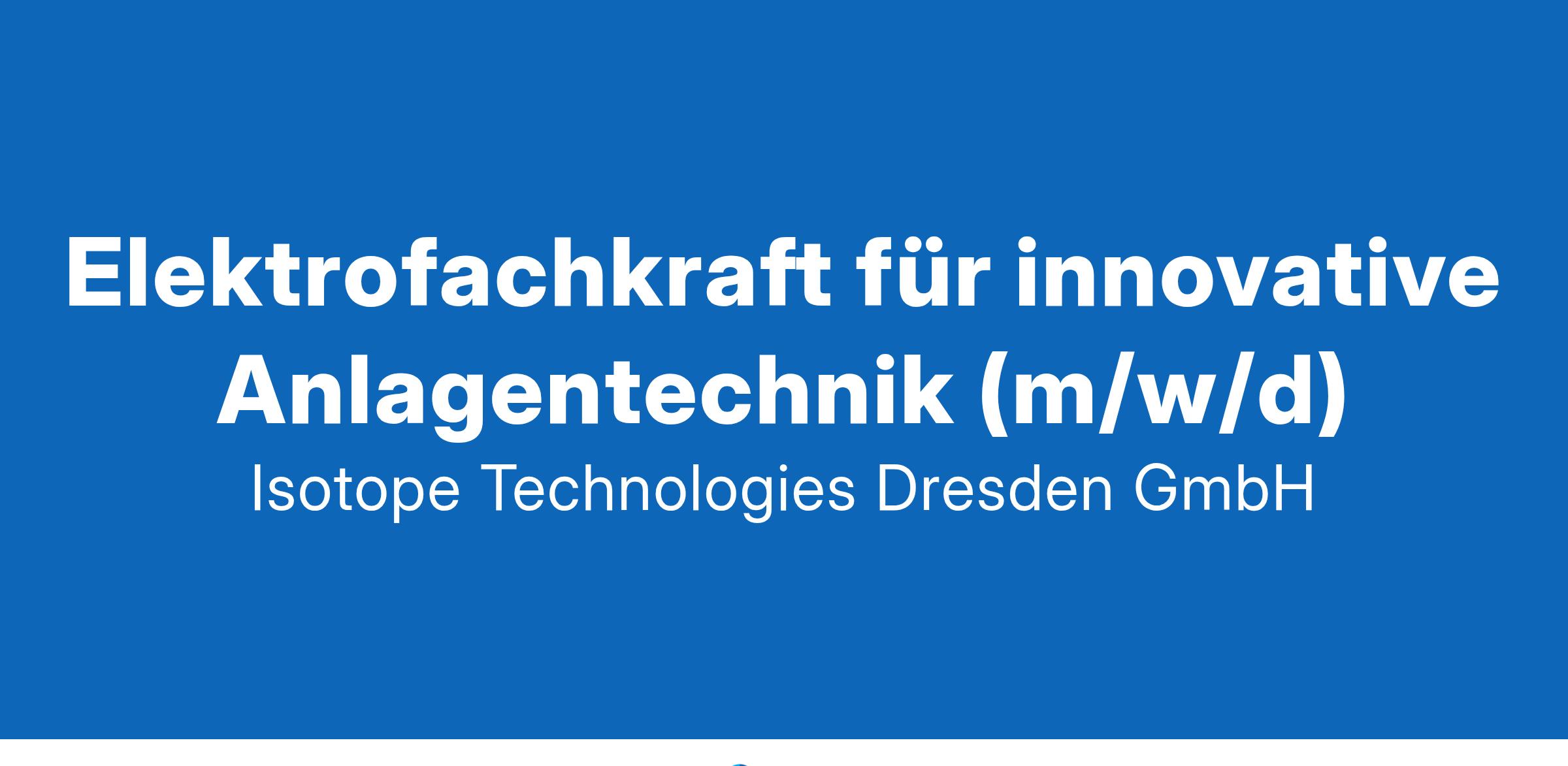 Derzeitig beschäftigt die ITD an seinem Standort in Dresden-Rossendorf ca. 90 der über 1000 Mitarbeitenden der Eckert & Ziegler Gruppe. Unsere Mission: WIR HELFEN ZU HEILEN | CONTRIBUTING TO SAVING LIVESIhr Beitrag zum Erfolg: Verdrahtung und Verschlauchung der elektrischen und pneumatischen Komponenten, sowie deren VDE-Abnahme am Standort und beim Kunden (national & international) Unterstützung bei der mechanischen Anlageninstallation am Standort und beim Kunden (national & international) Vorgabe von regelmäßigen Prüfterminen der Kundenanlagen nach Anlageninstallation Ansprechpartner für den Elektroingenieur bei Maschinenauslegung und Komponentenauswahl Nach intensiver Einarbeitung: Teil-Verantwortliche Elektrofachkraft, für den praktischen Teil, wie Prüfung der Maschinen und Anlagen für unsere Kunden vor der Anlagenauslieferung und Abnahme beim Kunden vor Ort Das qualifiziert Sie: abgeschlossene Ausbildung zum Industrieelektriker, Mechatroniker (m/w/d) oder vergleichbare Ausbildung Berufserfahrung und einschlägige Fachkompetenz im Bereich Maschinen- und Anlagenbau sehr gute Kommunikationsfähigkeit in Deutsch und Englisch Bereitschaft zum weltweiten Montage- oder Service-Einsatz von bis zu 30% Eigeninitiative, Analyse- und Problemlösefähigkeit sowie gutes räumliches Vorstellungsvermögen Ausgeprägte Teamfähigkeit und Motivation sich persönlich und fachlich weiterentwickeln zu wollen Selbstständigkeit, Organisationstalent, Zuverlässigkeit und Verantwortungsbewusstsein Freuen Sie sich auf: eine familienfreundliche Ausrichtung mit flexiblen Arbeitszeiten einen unbefristeten und sicheren Arbeitsplatz in einem sehr offenen, freundlichen und erfahrenen Team Attraktive Vergütung sowie vermögenswirksame Leistungen, betriebliche Altersvorsorge, Kindergartenzuschuss 30 Tage Urlaub und anlassbezogene bezahlte Freistellungen z.B. für Umzug, Krebsvorsorge oder Kind-Krank-Tage Gesundheitsangebote, z.B. Krankenkassen Gesundheitstage und Firmenfitness in Kooperation mit Hansefit Interessante und herausfordernde Tätigkeit mit hoher Eigenverantwortung im radiopharmazeutischen Sektor Angebot von Bike Leasing Möglichkeit zur individuellen Weiterentwicklung und -bildung während der Arbeitszeit Flache Hierarchien und kurze Entscheidungswege kostenlose Parkmöglichkeiten KontaktWenn Sie Interesse an dieser vielseitigen Tätigkeit haben, bitten wir Sie um Zusendung Ihrer aussagefähigen Bewerbungsunterlagen (ausschließlich über unser Online-Bewerbungsformular) unter Angabe Ihrer Gehaltsvorstellung. Jetzt bewerben Werden Sie Teil unseres Teams! Isotope Technologies Dresden GmbH • Personalmanagement • Frau Susann König Rossendorfer Ring 42 • 01328 Dresden • work@ezag.com • www.itd-dresden.de