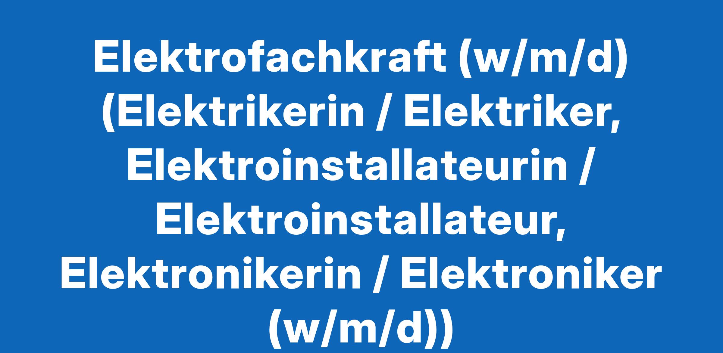 Elektrofachkraft (w/m/d) (Elektrikerin / Elektriker, Elektroinstallateurin / Elektroinstallateur, Elektronikerin / Elektroniker (w/m/d))