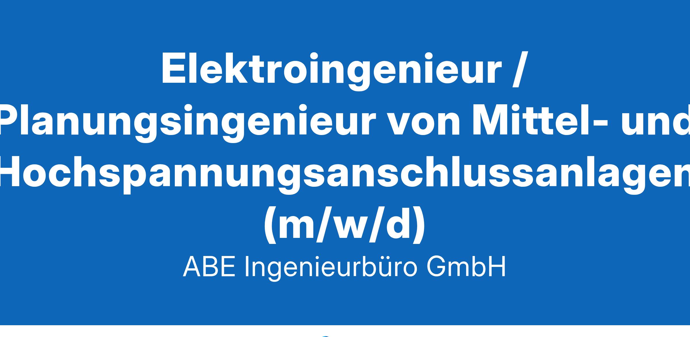 Wir suchen dich! Beim ABE Ingenieurbüro liegen die Schwerpunkte in der Beratung und Planung von Energieübertragungs- und Verteilungsanlagen für regenerative Energieerzeugungsanlagen, wie z.B. Windenergieanlagen, Biogas, Photovoltaik. Interessiert? Dann bewirb Dich jetzt bei uns! Wir suchen ab sofort: Elektroingenieur / Planungsingenieur von Mittel- und Hochspannungsanschlussanlagen (m/w/d) Deine Aufgaben bei uns:Du planst und begleitest die Ausschreibung von Mittel- und Hochspannungsanschlussanlagen, wie z. B. Umspannwerke, Kabelanlagen und Trafostationen und sorgst dafür, dass Windparks, Photovoltaikanlagen oder Blockheizkraftwerke (BHKW) zuverlässig an das öffentliche Netz angeschlossen werden.