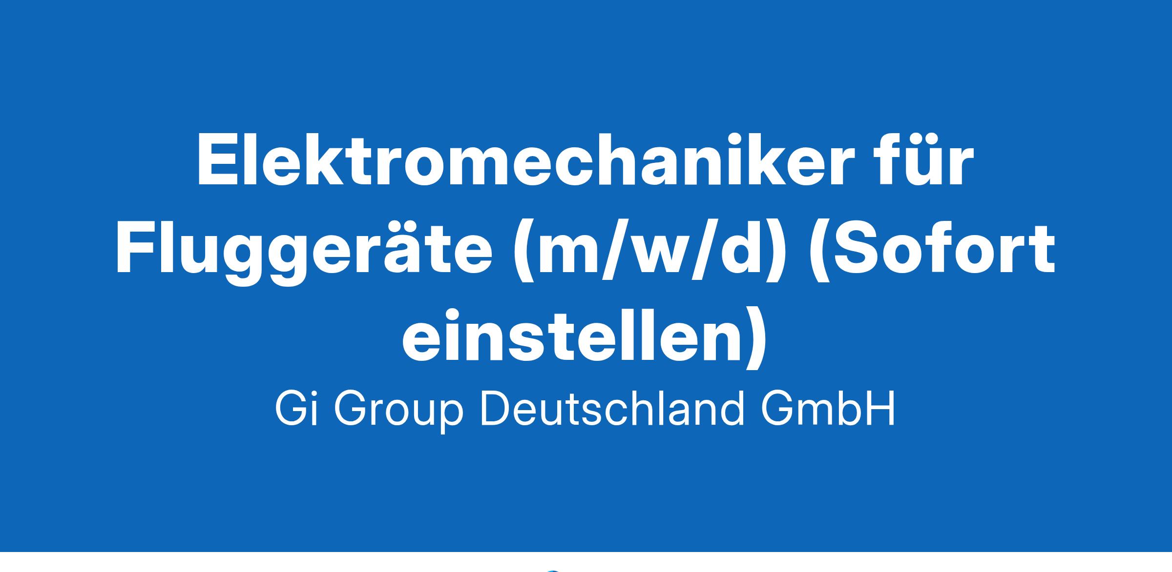 Elektromechaniker (gn) in der Luftfahrtindustrie ab sofort in Vollzeit in Hamburg im Rahmen der Direktvermittlung  Die Gi Group ist ein international agierender Personaldienstleister mit mehr als 500 Standorten in 40 Ländern. Unser Kunde ist ein renommiertes und zukunftsorientiertes Unternehmen aus der Luftfahrtindustrie Deine Aufgaben Ausführung von Reparaturen an elektromechanischen Bauteilen und Geräten  Fehlerdiagnosen an elektromechanischen Fluggeräten oder Baugruppen unter Anwendung von Messgeräten, Test- und Prüfeinrichtungen durchführen   Mit technischen Unterlagen arbeiten und die Dokumentation entsprechend pflegen Dein Profil Eine abgeschlossene Berufsausbildung in einem luftfahrttechnischen Bereich, z.B. Fluggerätelektronik Alternativ ist eine abgeschlossene Berufsausbildung in einem Beruf mit Schwerpunkt Mechatronik, z.B. Mechatroniker, Elektromechaniker oder eine gleichwertige Qualifikation wünschenswert Fachkenntnisse in der Wartung, Instandhaltung und Montage  Bereitschaft zum Erwerb fehlender Qualifikationen sowie zu berufsbezogener Weiterbildung  Gute Englischkenntnisse Unser Angebot Urlaubs- und Weihnachtsgeld sowie eine Gewinnbeteiligung  Flexible Arbeitszeiten (Gleitzeit, keine Schichtarbeit) und 30 Tage Urlaub  Flugvergünstigungen, Einkaufsrabatte in Geschäften und Jobrad-Leasing  Kostenloses Parken, betriebliche Altersvorsorge und Verpflegungszuschuss für die Kantine  Deine Bewerbung Für Deine Bewerbung Elektromechaniker in der Luftfahrtindustrie klicke bitte einfach auf „Jetzt bewerben“. Dort kannst Du Deine Kontaktdaten eingeben sowie Deinen Lebenslauf und Deine Bewerbungsunterlagen hochladen. Du benötigst dafür nur ca. 1 Minute. Dein zuständiger Personaldisponent wird sich bei Dir schnellstmöglich melden. Gerne kannst Du uns auch Deine Bewerbungsunterlagen per E-Mail zusenden. Wir freuen uns auf Deine Bewerbung! Unsere Stellenangebote richten sich an Arbeitssuchende jeglichen Geschlechts. (gn) = geschlechtsneutral. Kontakt Gi Group Recruiting Team