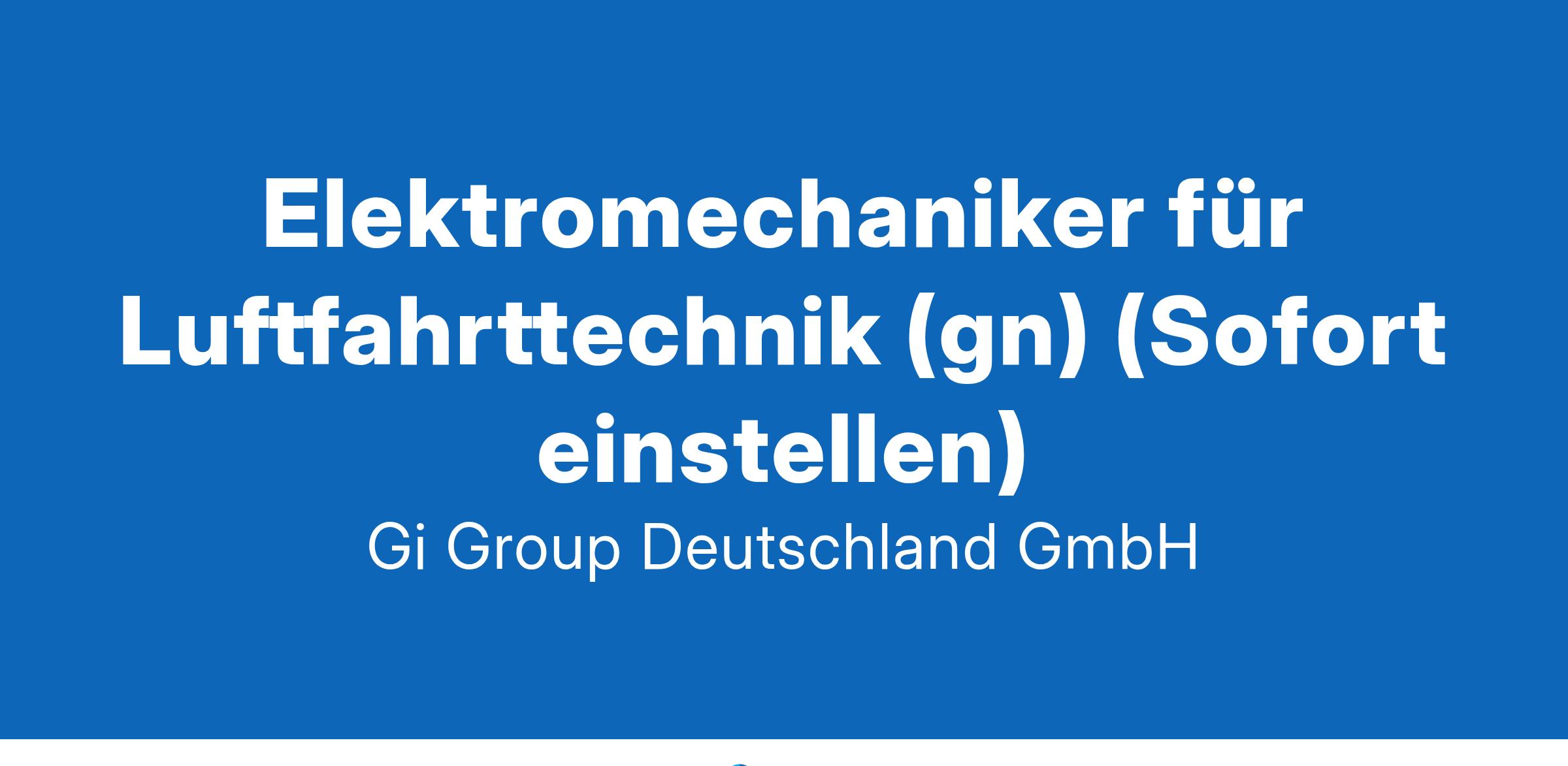 Elektromechaniker (gn) in der Luftfahrtindustrie ab sofort in Vollzeit in Hamburg im Rahmen der Direktvermittlung  Die Gi Group ist ein international agierender Personaldienstleister mit mehr als 500 Standorten in 40 Ländern. Unser Kunde ist ein renommiertes und zukunftsorientiertes Unternehmen aus der Luftfahrtindustrie Deine Aufgaben Ausführung von Reparaturen an elektromechanischen Bauteilen und Geräten  Fehlerdiagnosen an elektromechanischen Fluggeräten oder Baugruppen unter Anwendung von Messgeräten, Test- und Prüfeinrichtungen durchführen   Mit technischen Unterlagen arbeiten und die Dokumentation entsprechend pflegen Dein Profil Eine abgeschlossene Berufsausbildung in einem luftfahrttechnischen Bereich, z.B. Fluggerätelektronik Alternativ ist eine abgeschlossene Berufsausbildung in einem Beruf mit Schwerpunkt Mechatronik, z.B. Mechatroniker, Elektromechaniker oder eine gleichwertige Qualifikation wünschenswert Fachkenntnisse in der Wartung, Instandhaltung und Montage  Bereitschaft zum Erwerb fehlender Qualifikationen sowie zu berufsbezogener Weiterbildung  Gute Englischkenntnisse Unser Angebot Urlaubs- und Weihnachtsgeld sowie eine Gewinnbeteiligung  Flexible Arbeitszeiten (Gleitzeit, keine Schichtarbeit) und 30 Tage Urlaub  Flugvergünstigungen, Einkaufsrabatte in Geschäften und Jobrad-Leasing  Kostenloses Parken, betriebliche Altersvorsorge und Verpflegungszuschuss für die Kantine  Deine Bewerbung Für Deine Bewerbung Elektromechaniker in der Luftfahrtindustrie klicke bitte einfach auf „Jetzt bewerben“. Dort kannst Du Deine Kontaktdaten eingeben sowie Deinen Lebenslauf und Deine Bewerbungsunterlagen hochladen. Du benötigst dafür nur ca. 1 Minute. Dein zuständiger Personaldisponent wird sich bei Dir schnellstmöglich melden. Gerne kannst Du uns auch Deine Bewerbungsunterlagen per E-Mail zusenden. Wir freuen uns auf Deine Bewerbung! Unsere Stellenangebote richten sich an Arbeitssuchende jeglichen Geschlechts. (gn) = geschlechtsneutral. Kontakt Gi Group Recruiting Team