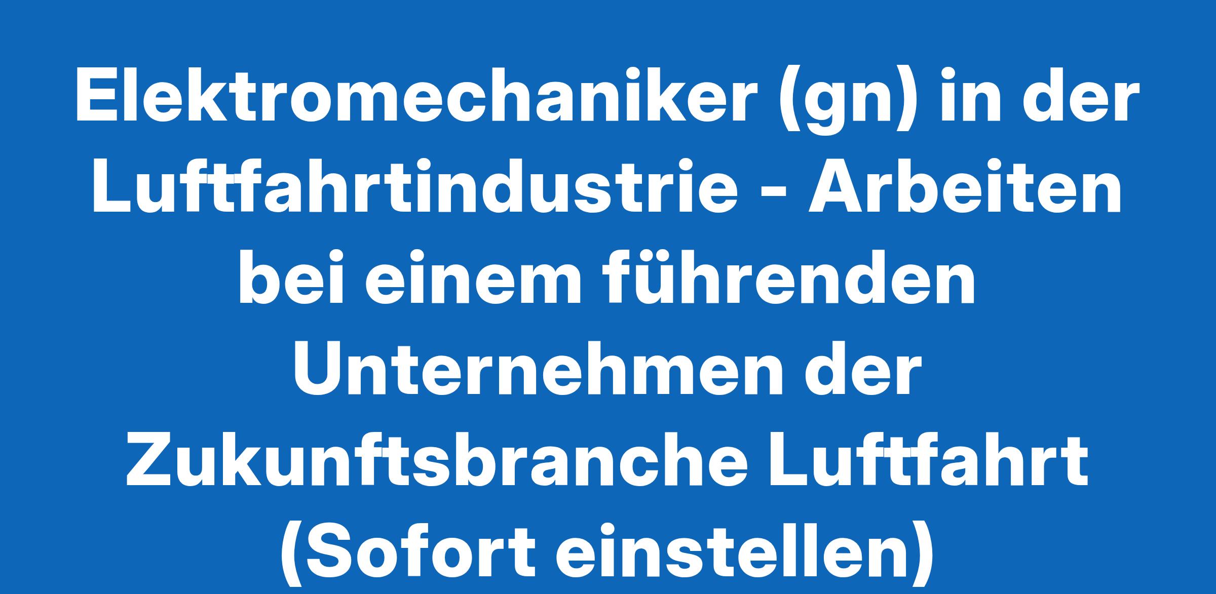 Elektromechaniker (gn) in der Luftfahrtindustrie - Arbeiten bei einem führenden Unternehmen der Zukunftsbranche Luftfahrt (Sofort einstellen)