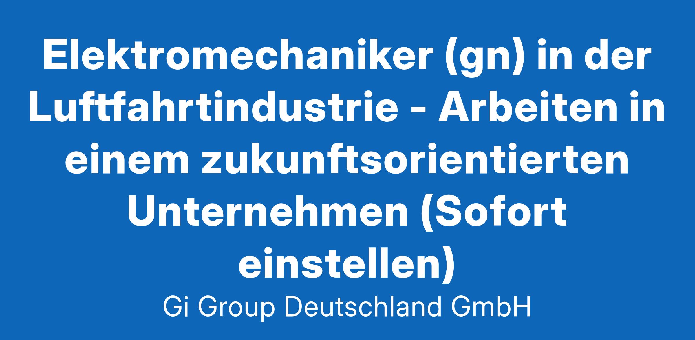 Elektromechaniker (gn) in der Luftfahrtindustrie ab sofort in Vollzeit in Hamburg im Rahmen der Direktvermittlung Die Gi Group ist ein international agierender Personaldienstleister mit mehr als 500 Standorten in 40 Ländern. Unser Kunde ist ein renommiertes und zukunftsorientiertes Unternehmen aus der Luftfahrtindustrie Deine Aufgaben Ausführung von Reparaturen an elektromechanischen Bauteilen und Geräten Fehlerdiagnosen an elektromechanischen Fluggeräten oder Baugruppen unter Anwendung von Messgeräten, Test- und Prüfeinrichtungen durchführen Mit technischen Unterlagen arbeiten und die Dokumentation entsprechend pflegen Dein Profil Eine abgeschlossene Berufsausbildung in einem luftfahrttechnischen Bereich, z.B. Fluggerätelektronik Alternativ ist eine abgeschlossene Berufsausbildung in einem Beruf mit Schwerpunkt Mechatronik, z.B. Mechatroniker, Elektromechaniker oder eine gleichwertige Qualifikation wünschenswert Fachkenntnisse in der Wartung, Instandhaltung und Montage Bereitschaft zum Erwerb fehlender Qualifikationen sowie zu berufsbezogener Weiterbildung Gute Englischkenntnisse Unser Angebot Urlaubs- und Weihnachtsgeld sowie eine Gewinnbeteiligung Flexible Arbeitszeiten (Gleitzeit, keine Schichtarbeit) und 30 Tage Urlaub Flugvergünstigungen, Einkaufsrabatte in Geschäften und Jobrad-Leasing Kostenloses Parken, betriebliche Altersvorsorge und Verpflegungszuschuss für die Kantine Deine Bewerbung Für Deine Bewerbung Elektromechaniker in der Luftfahrtindustrie klicke bitte einfach auf „Jetzt bewerben“. Dort kannst Du Deine Kontaktdaten eingeben sowie Deinen Lebenslauf und Deine Bewerbungsunterlagen hochladen. Du benötigst dafür nur ca. 1 Minute. Dein zuständiger Personaldisponent wird sich bei Dir schnellstmöglich melden. Gerne kannst Du uns auch Deine Bewerbungsunterlagen per E-Mail zusenden. Wir freuen uns auf Deine Bewerbung! Unsere Stellenangebote richten sich an Arbeitssuchende jeglichen Geschlechts. (gn) = geschlechtsneutral. Kontakt Gi Group Recruiting Team