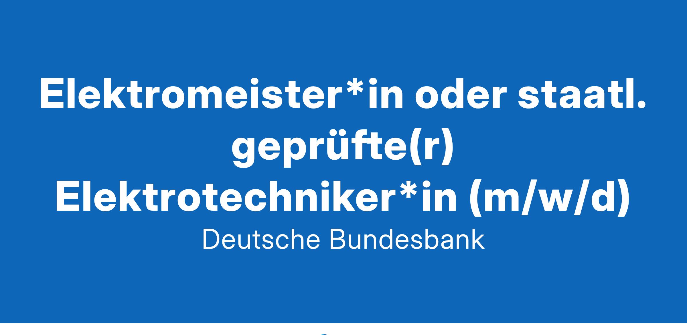 Die Deutsche Bundesbank ist eine besondere Bank. Wir sorgen mit der EZB und den anderen europäischen Zentralbanken für einen stabilen Euro. Dafür und für weitere Zentralbankaufgaben brauchen wir eine große Vielfalt von Spezialistinnen und Spezialisten in handwerklichen Arbeitsbereichen, damit die Institution funktionieren kann. Werden auch Sie Teil von etwas Besonderem und finden Sie ein sicheres berufliches Zuhause! Elektromeister*in oder staatl. geprüfte(r) Elektrotechniker*in (m/w/d) Arbeitsort Hannover Arbeitszeit Vollzeit Beginn ab sofort Stellen-ID 2025_0041_02 Arbeit von besonderem Wert: Ihr Einsatz bei uns Sie sind mit dem Betrieb und der Instandhaltung von komplexen gebäudetechnischen Anlagen betraut und führen auch Instandsetzungen durch. Ferner sind Sie für die fachliche Betreuung von Fremdfirmen und für die Leitung der E-Werkstatt einschließlich der Termin- und Ablaufüberwachung, der Prüfleistungen nach DGUV, VDE, DIN und VDMA zuständig. Besondere Werte: Ihre Qualifikationen Abgeschlossene Prüfung zum/zur Elektromeister*in oder vergleichbare Berufsausbildung zum/zur staatlich geprüften Techniker*in der Elektrotechnik. Umfassende Berufserfahrung in den o.g. Aufgabenbereichen und branchenübergreifendes Fachwissen in der gebäudetechnischen Ausrüstung. Selbständige, eigenverantwortliche und zuverlässige Arbeitsweise. Fähigkeit zur Teamarbeit und zur Kooperation mit anderen Fachgewerken. Hohe Einsatzbereitschaft. Übernahme bedarfsabhängiger Bereitschaftsdienste außerhalb der normalen Dienstzeit. Führerschein Klasse B Wertvolle Arbeit verdient besondere Vorteile Vergütung & Perspektiven Vergütung in Anlehnung an den TVöD auf Basis der Entgeltgruppe E 8, zzgl. Bankzulage, (abhängig von Ihrer Erfahrung ca. 40.836/jährl. € bis 45.187/jährl. €), zusätzliche Altersvorsorge, sicherer Arbeitsplatz im öffentlichen Dienst mit verlässlichen Arbeitsbedingungen, abwechslungsreiche Aufgaben, zielgerichtete Einarbeitung, umfangreiches Weiterbildungsangebot New Work Kollegiale und wertschätzende Arbeitsatmosphäre, Arbeitszeit: 39 Stunden/Woche, 30 Tage Urlaub, Gleitzeit mit Zeitausgleich für Mehrarbeit, Work-Life-Balance Zusatzleistungen Kostenloses Deutschlandticket als Jobticket, gute Verkehrsanbindung (Bus & Bahn), zentrale Lage, betriebliches Gesundheitsmanagement Wollen Sie unser Team bereichern? Dann sind wir schon sehr gespannt auf Ihre Bewerbung. Falls Sie im Voraus noch Fragen haben, wenden Sie sich einfach an die zuständige Ansprechperson. Ihre Fragen zur Bewerbung Anke Köhler, 0511 3033-3117 anke.koehler@bundesbank.de Ihre Fragen zum Aufgabengebiet Stefan Meyer, 0511 3033-2496 stefan.meyer@bundesbank.de Bitte bewerben Sie sich bis zum 18.02.2025 mit der Stellen-ID 2025_0041_02 über unser Online-Tool. Vielfalt und Chancengleichheit sind uns wichtig. Schwerbehinderte Menschen werden bei gleicher Eignung bevorzugt berücksichtigt. Auch fördert die Deutsche Bundesbank die berufliche Gleichstellung von Frauen und Männern insbesondere bei der Besetzung von Führungspositionen. Daher begrüßen wir besonders Bewerbungen von Frauen. Sie sind uns in Ihrer ganzen Individualität herzlich willkommen! Wir freuen uns darauf, Sie mit Ihrer Bewerbung näher kennenzulernen. Weitere Informationen über den Arbeitgeber Bundesbank finden Sie unter www.bundesbank.de/karriere. Deutsche Bundesbank | Wilhelm-Epstein-Straße 14 | 60431 Frankfurt am Main