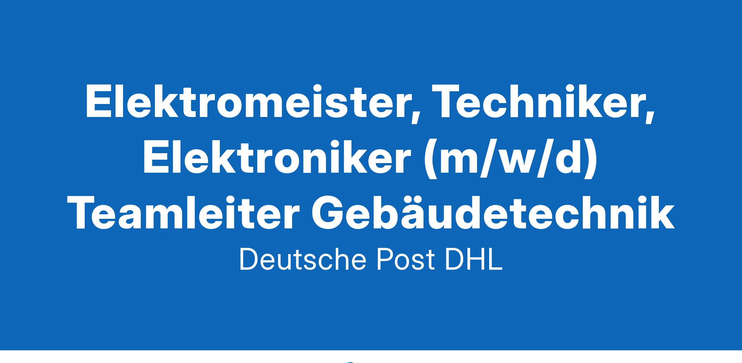 Ausbildung: Sie sind Techniker oder Meister im Bereich Elektrotechnik oder verfügen über ein technisches Studium oder sind ein erfahrener Elektriker / Elektroniker für Gebäudetechnik (w/m/d)Know-how: Sie haben umfassende Kenntnisse im Bereich Facility Management / TGA oder GebäudetechnikPersönlichkeit: Sie übernehmen gerne Führungsverantwortung und arbeiten eigenverantwortlich. Ihre Kunden- und Serviceorientierung zeichnen Sie ausIT: PC-Kenntnisse und Microsoft Office-Kenntnisse notwendigQualifikation: Sie besitzen einen Führerschein Klasse B und sind für Ortsbesuche der Post- und Paketzentren in Ihrer Region mobil