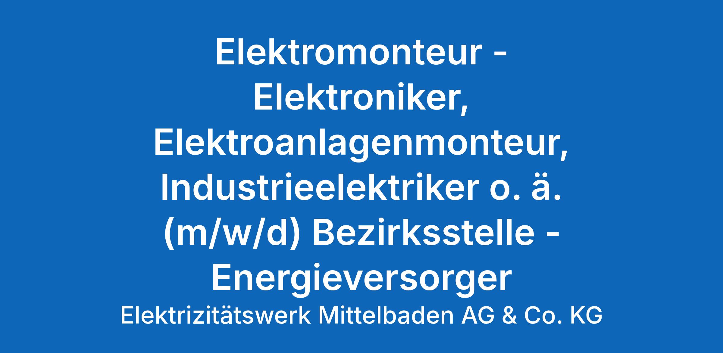 Elektromonteur - Elektroniker, Elektroanlagenmonteur, Industrieelektriker o. ä. (m/w/d) Bezirksstelle - Energieversorger Oberkirch