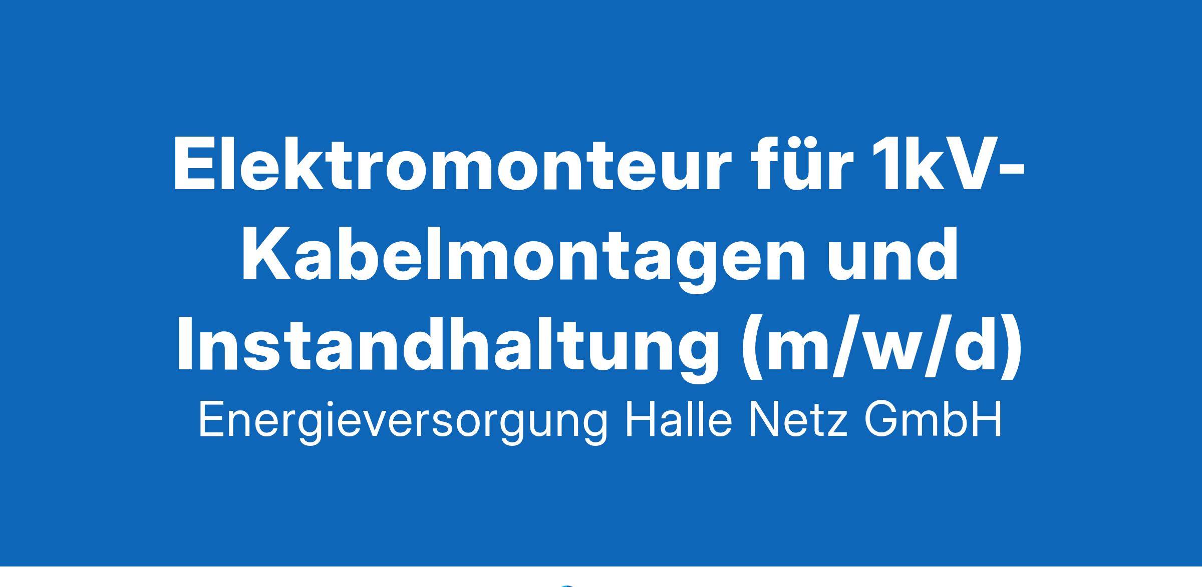 Wir suchen unbefristet zum nächstmöglichen Zeitpunkt einen Elektromonteur für 1kV-Kabelmontagen und Instandhaltung (m/w/d). Gut versorgt: innovativ, sicher, umweltfreundlich Zuverlässig, vor Ort, rund um die Uhr Mit Engagement unsere Stadt mitgestalten Neben einem interessanten Aufgabengebiet und einer eigenverantwortlichen Tätigkeit in unserem Team bieten wir ein attraktives Vergütungssystem, die Möglichkeit der flexiblen Arbeitszeitgestaltung und ein teamorientiertes Arbeitsumfeld. Zu Ihren Aufgaben gehören die: Durchführung von Kabelmontagen im Niederspannungsnetz Netz und Hausanschlussbereich, Durchführung von Arbeiten unter Spannung, Mitarbeit bei der Vorbereitung von Schaltmaßnahmen, Durchführung von Schaltmaßnahmen, Mitarbeit bei der Vorbereitung von Instandhaltungsmaßnahmen, Durchführung von Instandhaltungsmaßnahmen, Durchführung von Inspektions- und Wartungsmaßnahmen, Störungsbearbeitung inkl. Mitarbeit bei der Störungsanalyse, Durchführung der Datenpflege, Kontrolle und Abnahme von Dienstleistungsaufträgen. Unsere Anforderungen an Sie: abgeschlossene technische Berufsausbildung in der Fachrichtung Elektrotechnik oder einer vergleichbaren Qualifikation, umfassende Berufserfahrung in der Muffenmontage an Kunststoff- und Massekabeln, Kenntnisse im Kabeltiefbau, angemessene technische Spezialkenntnisse und Erfahrungen bei Errichtung und Betreibung von Anlagen im Aufgabengebiet, Kenntnisse im Umgang mit Datenbanken und SAP wünschenswert, sicherer Umgang mit der gängigen MS-Office-Standardsoftware, Teilnahme am Bereitschaftsdienst (Wohnort in Halle oder im Näherungsbereich von Halle), Höhentauglichkeit, PKW-Führerschein, min. Klasse B, Führerschein Klasse C oder CE wünschenswert. Haben wir Ihr Interesse geweckt?