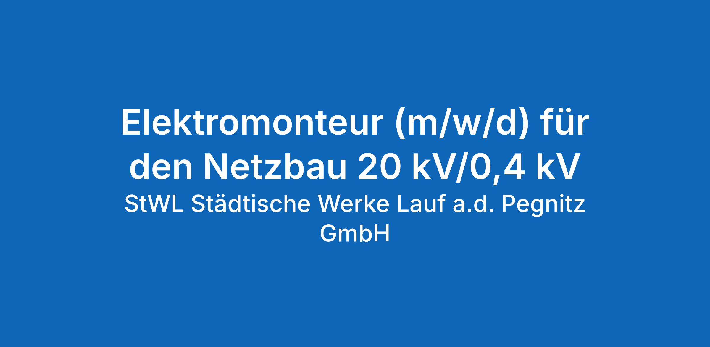 Rund 100 Mitarbeiter der Städtischen Werke Lauf versorgen in der Region über 32.000 Menschen mit Strom, Erdgas und Wasser – und das seit mehr als 125 Jahren. Ohne uns könnte keiner sein Smartphone aufladen. Ohne uns gäbe es kein frisches Trinkwasser. Und ohne Sie fehlt uns die Verstärkung, um die Herausforderungen von morgen zu meistern. Möchten Sie sich mit Ihrer Person und Qualifikation bei uns einbringen? Dann werden Sie Teil unseres Teams und freuen Sie sich auf ein modernes Dienstleistungsunternehmen mit hohem Qualitätsanspruch, das Sie auf Ihrem Weg mit allen Kräften unterstützt.