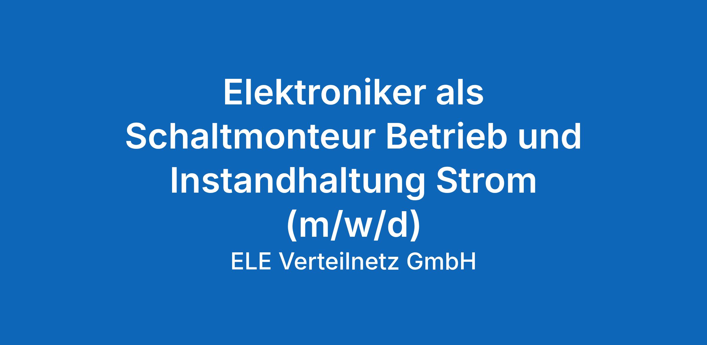 Elektroniker als Schaltmonteur Betrieb und Instandhaltung Strom (m/w/d)