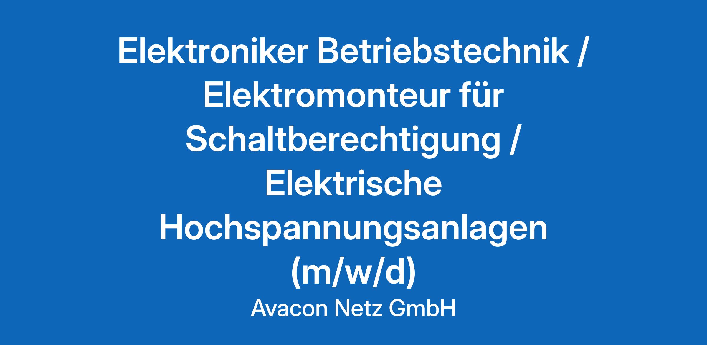 Elektroniker Betriebstechnik / Elektromonteur für Schaltberechtigung / Elektrische Hochspannungsanlagen (m/w/d)
