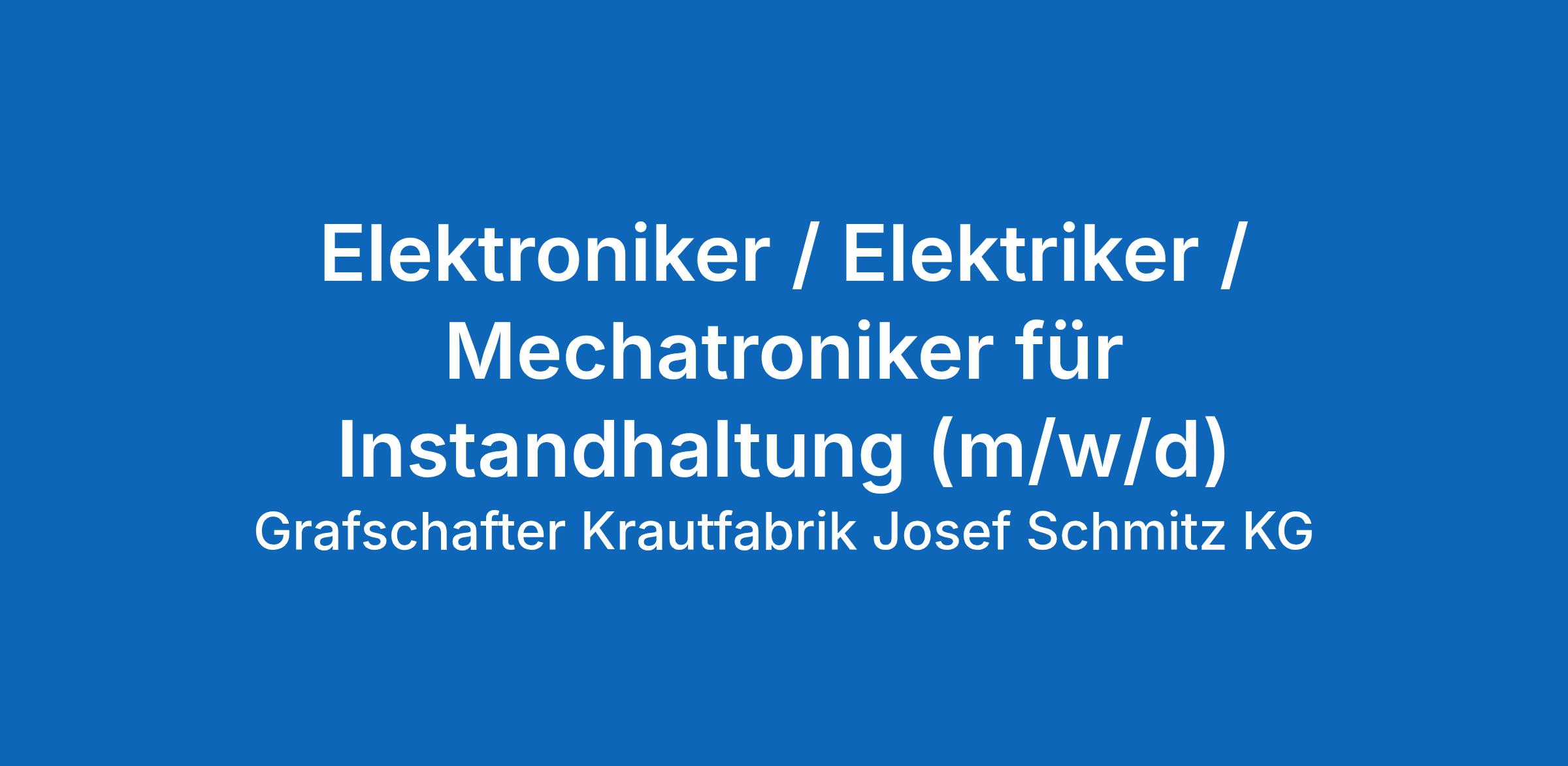 Elektroniker / Elektriker / Mechatroniker für Instandhaltung (m/w/d)