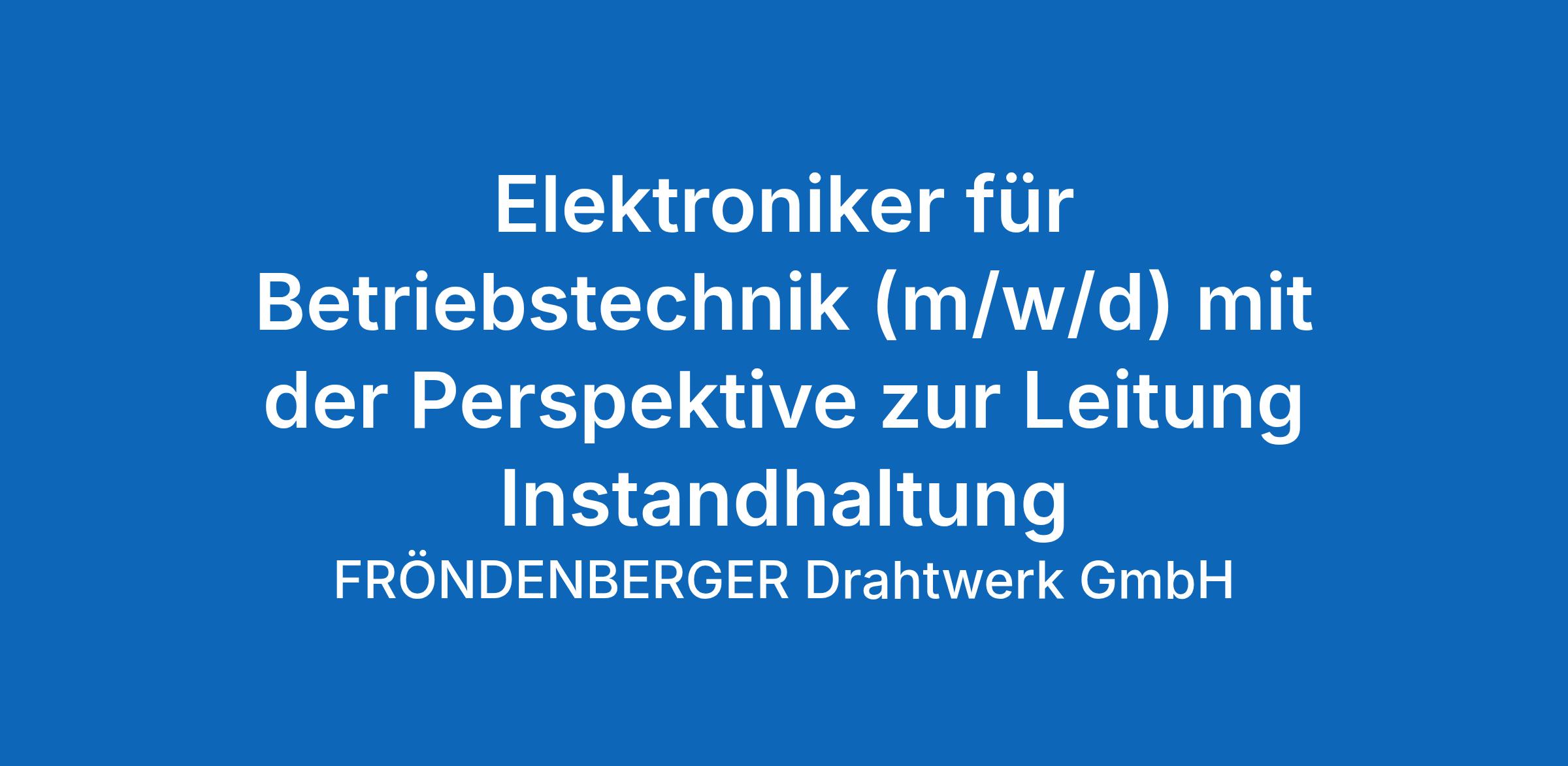 Elektroniker für Betriebstechnik (m/w/d) mit der Perspektive zur Leitung Instandhaltung