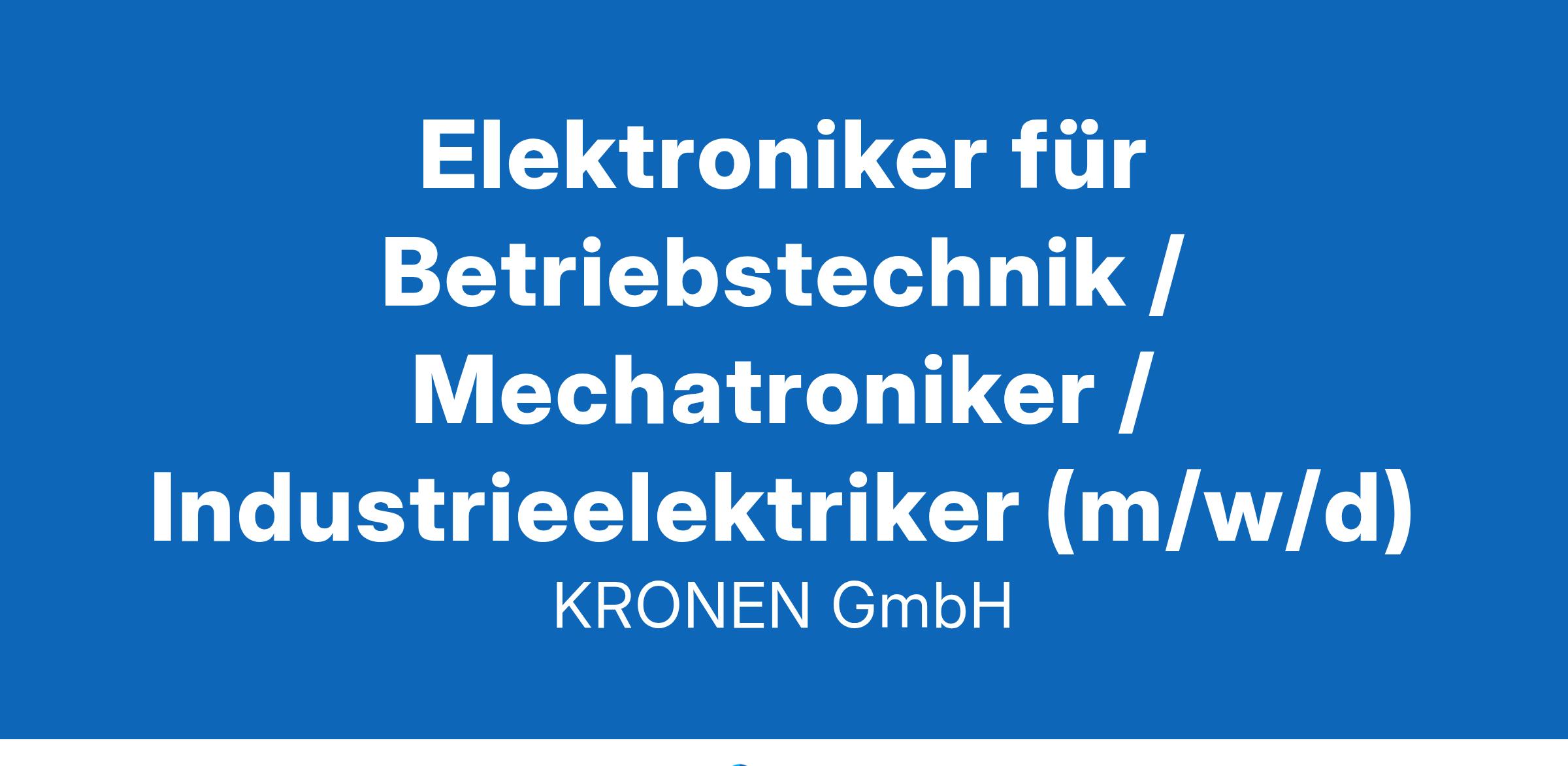 Mit uns gemeinsam neue Wege gehen Elektroniker für Betriebstechnik / Mechatroniker / Industrieelektriker (m/w/d) Als Servicetechniker Elektrotechnik bzw. Elektroanlagenmonteur (m/w/d) sind Sie zuständig für den eigenständigen Aufbau von Schaltschränken und Maschinenbau sowie die Einhaltung der relevanten Sicherheitsvorschriften und Qualitätsstandards. Ihre Aufgaben Eigenständiger Aufbau von Schaltschränken und Maschinenbau Einhaltung der relevanten Sicherheitsvorschriften und Qualitätsstandards Dokumentation und Protokollierung der durchgeführten Arbeiten Sicherstellung der Funktionsfähigkeit und Sicherheit unserer technischen Systeme Fehlerdiagnose und Behebung von Störungen an Maschinen und Anlagen Zusammenarbeit mit anderen Fachabteilungen zur Optimierung von Produktionsprozessen Durchführung von Inspektionen und Reparaturen Installation, Wartung und Instandhaltung von elektrischen Anlagen und Betriebsmitteln Ihre Qualifikation Abgeschlossene Ausbildung als Elektroniker (m/w/d) für Betriebstechnik oder vergleichbare Qualifikation Erfahrung in der Wartung und Instandhaltung von elektrischen Anlagen Fundierte Kenntnisse in der Steuerungs- und Regeltechnik Kenntnisse im Umgang mit Mess- und Prüfgeräten Selbstständige, strukturierte Arbeitsweise und Problemlösungsfähigkeit Teamorientierung und Kommunikationsfähigkeit Ihre Vorteile Sehr gute Zukunftsperspektiven in einem Familienunternehmen Ein sicherer, moderner Arbeitsplatz mit einer wertschätzenden Arbeitsatmosphäre Leistungsgerechte Bezahlung, erweiterte Sozialleistungen, betriebliches Gesundheitsmanagement & betriebliche Altersvorsorge, Firmenevents u. a. Sorgfältige, systematische Einarbeitung in die verschiedenen Arbeitsprozesse Flexible Arbeitszeiten: Gleitzeit mit der Möglichkeit zum Freizeitausgleich Über uns Wir stehen als familiengeführtes Unternehmen mit unseren hoch qualifizierten Mitarbeiter (m/w/d) und über 45 Jahren Branchen-Know-how für innovative Nahrungsmitteltechnik – und das weltweit. Bei KRONEN sind heute über 130 Mitarbeiter tätig, wir sind mit Vertretungen in mehr als 80 Ländern persönlich für unsere Kunden da und liefern unsere Lösungen in rund 120 Länder. Sympathisch, verantwortungsbewusst, innovativ. Das passt? Wir freuen uns auf Sie. Ihre Bewerbungsunterlagen senden Sie bitte in Schriftform an Frau Constanze Schwarz, gerne auch per E-Mail. Ihre Ansprechpartnerin Constanze Schwarz Personalreferentin T +49 (0)7854 9646 - 191 hr@kronen.eu Folgen Sie uns: KRONEN GmbH Römerstr. 2a D-77694 Kehl am Rhein www.kronen.eu