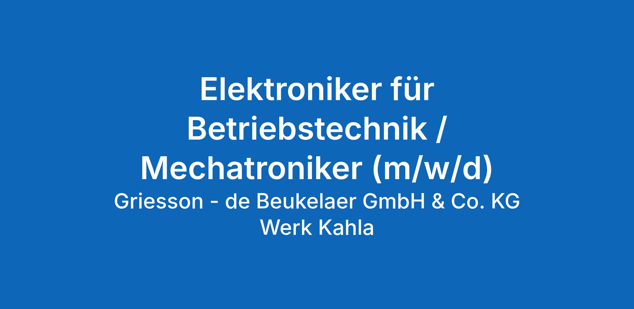 Besuchen Sie unseren Bewerbertag (Jeden ersten Mittwoch des Monats um 16:00 Uhr) Anmeldung unter: www.griesson-debeukelaer.de/bewerbertag-kahla