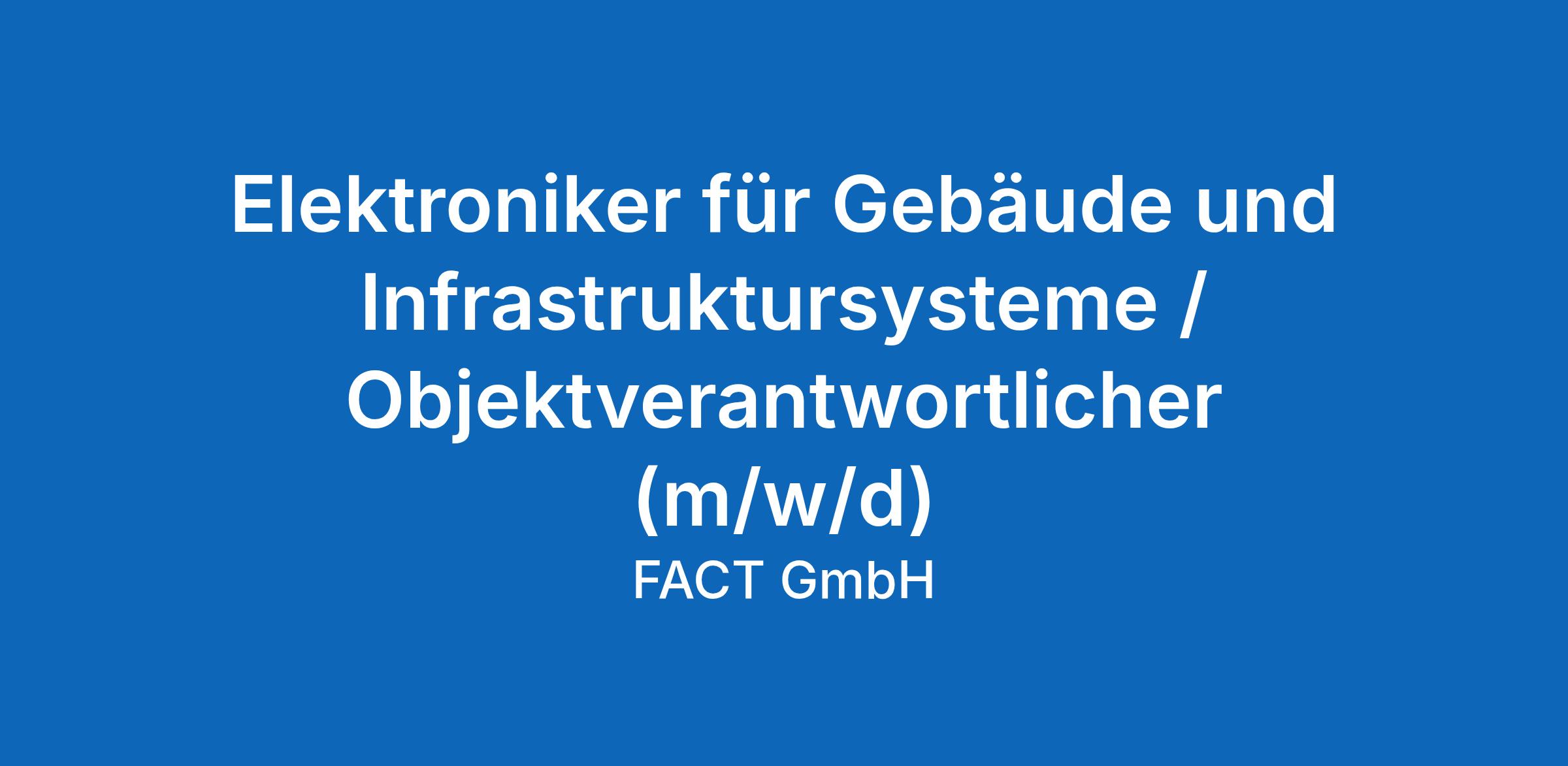 Elektroniker für Gebäude und Infrastruktursysteme / Objektverantwortlicher (m/w/d)