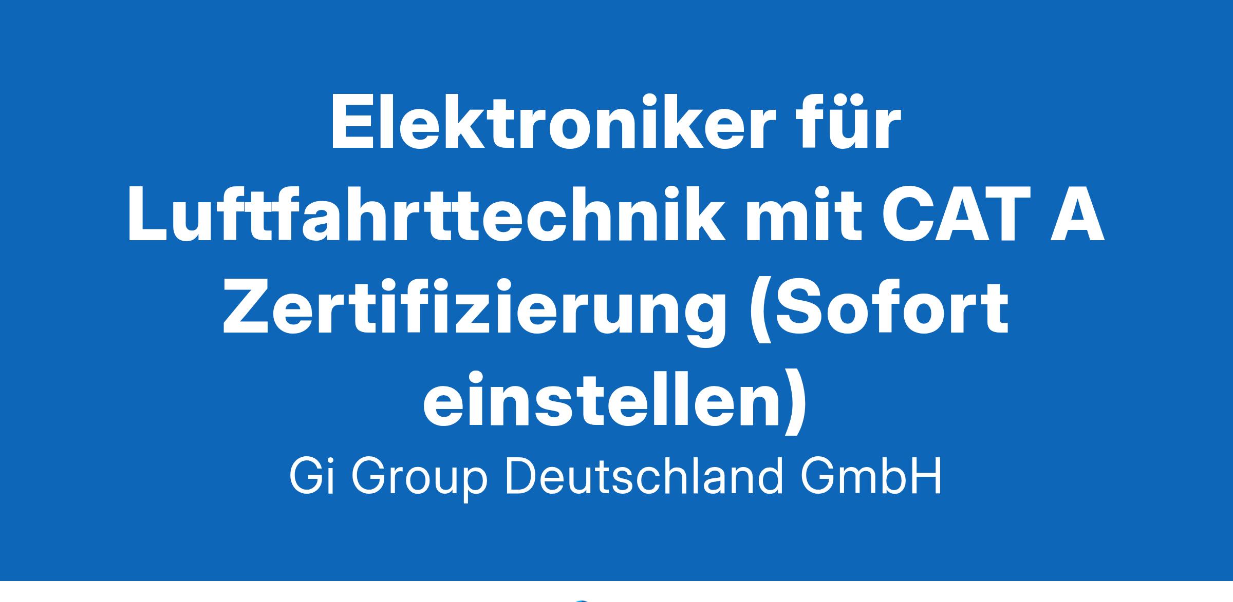 Fluggerätelektroniker (gn) mit CAT A Theorie ab sofort in Vollzeit in Hamburg in der Direktvermittlung Die Gi Group ist ein international agierender Personaldienstleister mit mehr als 500 Standorten in 40 Ländern. Unser Kunde ist ein renommiertes und zukunftsorientiertes Unternehmen aus der Luftfahrt.  Deine Aufgaben Du kümmerst dich um die elektrische Ausstattung von VIP-Flugzeugen (z.B. A320, A350 oder B747) Die fachlichen Absprachen mit dem Design-Engineering und anderen Partnern Nach Wunsch: Sonderaufgaben, wie die Führung von Arbeitsgruppen, Betreuung von Auszubildenden oder Auslandseinsätze Dein Profil Eine abgeschlossene technische Berufsausbildung als Flugzeugelektroniker (inkl. CAT A Theorie) Fortgeschrittene Englischkenntnisse Du arbeitest gerne genau und eigenverantwortlich, bist aber auch ein Teamplayer Das bietet unser Kunde Urlaubs- und Weihnachtsgeld sowie eine Gewinnbeteiligung  Flexible Arbeitszeiten (Gleitzeit, keine Schichtarbeit) und 30 Tage Urlaub  Flugvergünstigungen, Einkaufsrabatte in Geschäften und Jobrad-Leasing  Kostenloses Parken, betriebliche Altersvorsorge und Verpflegungszuschuss für die Kantine  Deine Bewerbung Für Deine Bewerbung als Fluggerätelektroniker klicke bitte einfach auf „Jetzt bewerben“. Dort kannst Du Deine Kontaktdaten eingeben sowie Deinen Lebenslauf und Deine Bewerbungsunterlagen hochladen. Du benötigst dafür nur ca. 1 Minute. Dein zuständiger Personaldisponent wird sich bei Dir schnellstmöglich melden. Gerne kannst Du uns auch Deine Bewerbungsunterlagen per E-Mail zusenden. Wir freuen uns auf Deine Bewerbung als Fluggerätelektroniker für VIP Flugzeuge! Unsere Stellenangebote richten sich an Arbeitssuchende jeglichen Geschlechts. (gn) = geschlechtsneutral. Kontakt Gi Group Recruiting Team