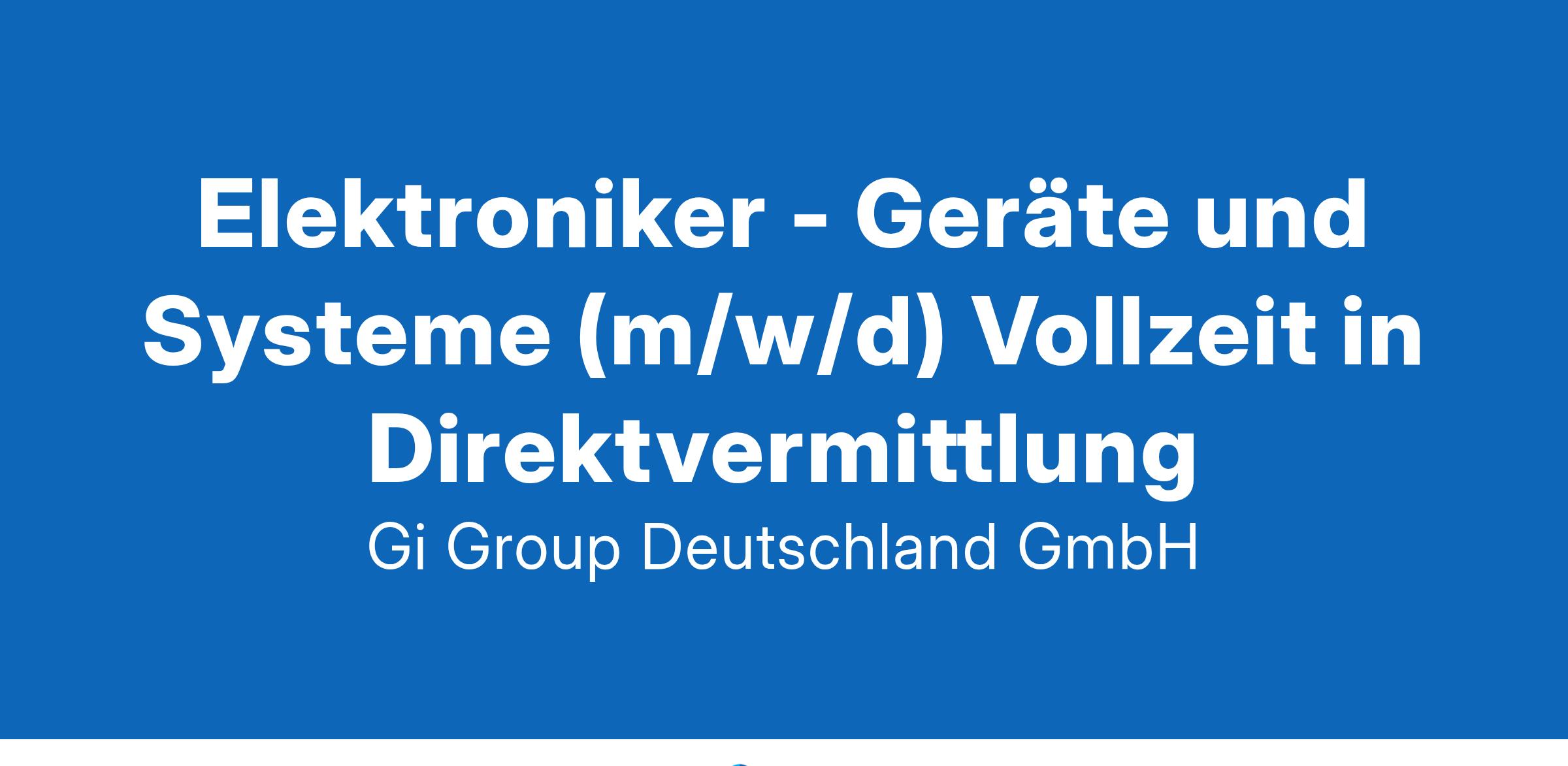 Elektroniker - Geräte und Systeme (m/w/d) Vollzeit in Direktvermittlung