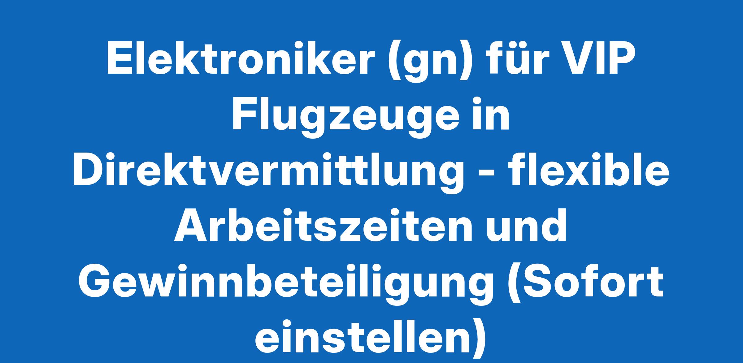 Elektroniker (gn) für VIP Flugzeuge in Direktvermittlung - flexible Arbeitszeiten und Gewinnbeteiligung (Sofort einstellen)