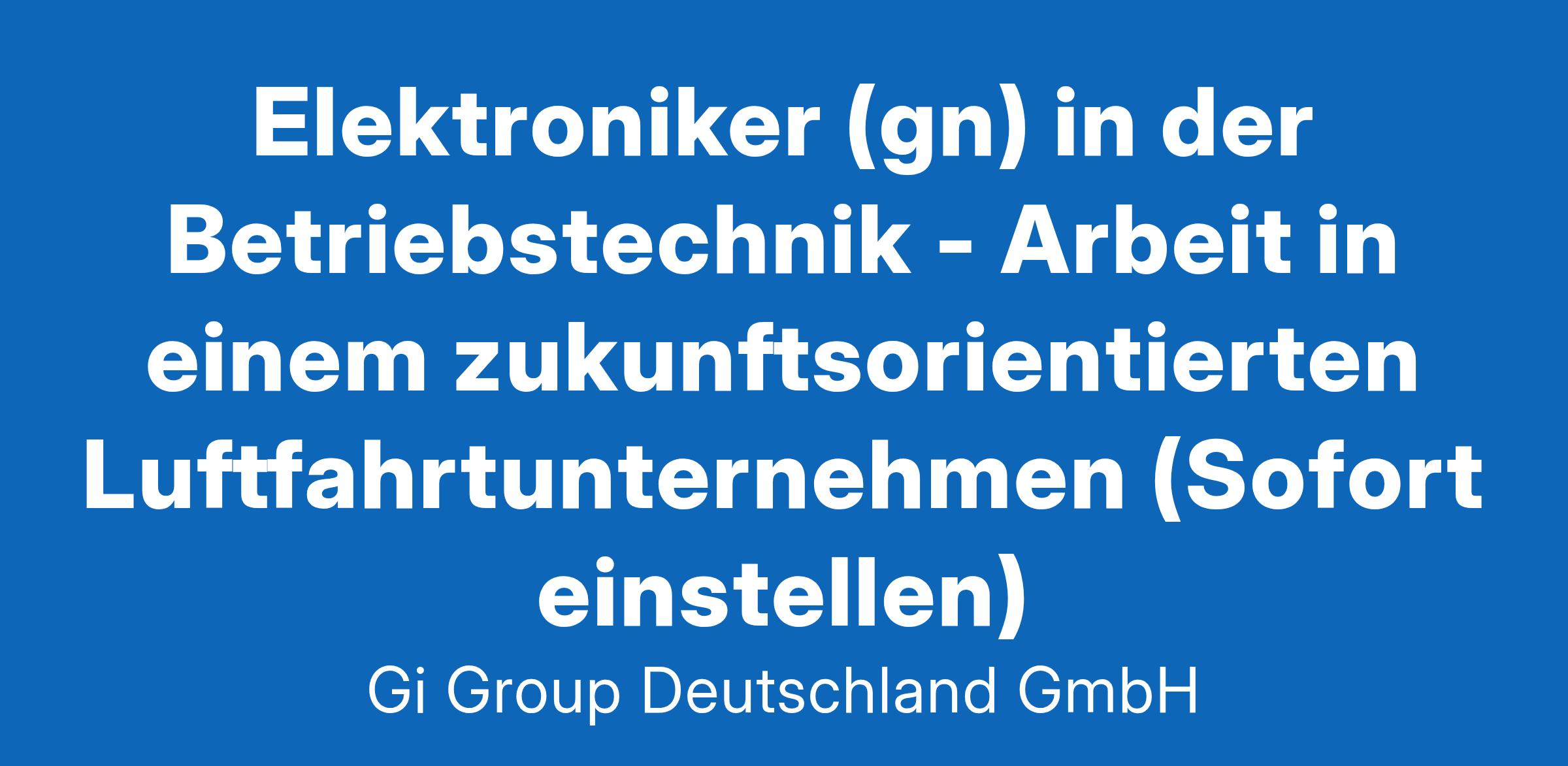 Elektroniker (gn) in der Betriebstechnik ab sofort in Vollzeit in Hamburg in der Direktvermittlung Die Gi Group ist ein international agierender Personaldienstleister mit mehr als 500 Standorten in 40 Ländern. Unser Kunde ist ein renommiertes und zukunftsorientiertes Unternehmen aus der Luftfahrt. Deine Aufgaben Platinenreparatur auf Bauteilebene durchführen und verschiedene Löttechniken anwenden Fehlerdiagnosen an elektronischen Fluggeräten oder Baugruppen unter Anwendung von Messgeräten, Test- und Prüfeinrichtungen durchführen Arbeiten mit technischen Unterlagen und entsprechnde Dokumentation Dein Profil Eine abgeschlossene luftfahrttechnische Berufsausbildung, z.B. als Fluggerätelektroniker Alternativ auch eine abgeschlossene Berufsausbildung in einem elektronischen Beruf, z.B. Elektroniker für Geräte und Systeme, Radio- und Fernsehtechniker, Kommunikationselektroniker,, Funkelektroniker oder eine vergleichbare Qualifikation Du bringst Fachkenntnisse in Analog-/Digital-/Mess- oder Schaltungstechnik mit Bereitschaft zum Erwerb fehlender Qualifikationen sowie zu berufsbezogener Weiterbildung Gute Englischkenntnisse Das bietet unser Kunde Urlaubs- und Weihnachtsgeld sowie eine Gewinnbeteiligung Flexible Arbeitszeiten (Gleitzeit, keine Schichtarbeit) und 30 Tage Urlaub Flugvergünstigungen, Einkaufsrabatte in Geschäften und Jobrad-Leasing Kostenloses Parken, betriebliche Altersvorsorge und Verpflegungszuschuss für die Kantine Deine Bewerbung Für Deine Bewerbung als Elektroniker in der Betriebstechnik klicke bitte einfach auf „Jetzt bewerben“. Dort kannst Du Deine Kontaktdaten eingeben sowie Deinen Lebenslauf und Deine Bewerbungsunterlagen hochladen. Du benötigst dafür nur ca. 1 Minute. Dein zuständiger Personaldisponent wird sich bei Dir schnellstmöglich melden. Gerne kannst Du uns auch Deine Bewerbungsunterlagen per E-Mail zusenden. Wir freuen uns auf Deine Bewerbung als Elektroniker in der Betriebstechnik! Unsere Stellenangebote richten sich an Arbeitssuchende jeglichen Geschlechts. (gn) = geschlechtsneutral. Kontakt Gi Group Recruiting Team