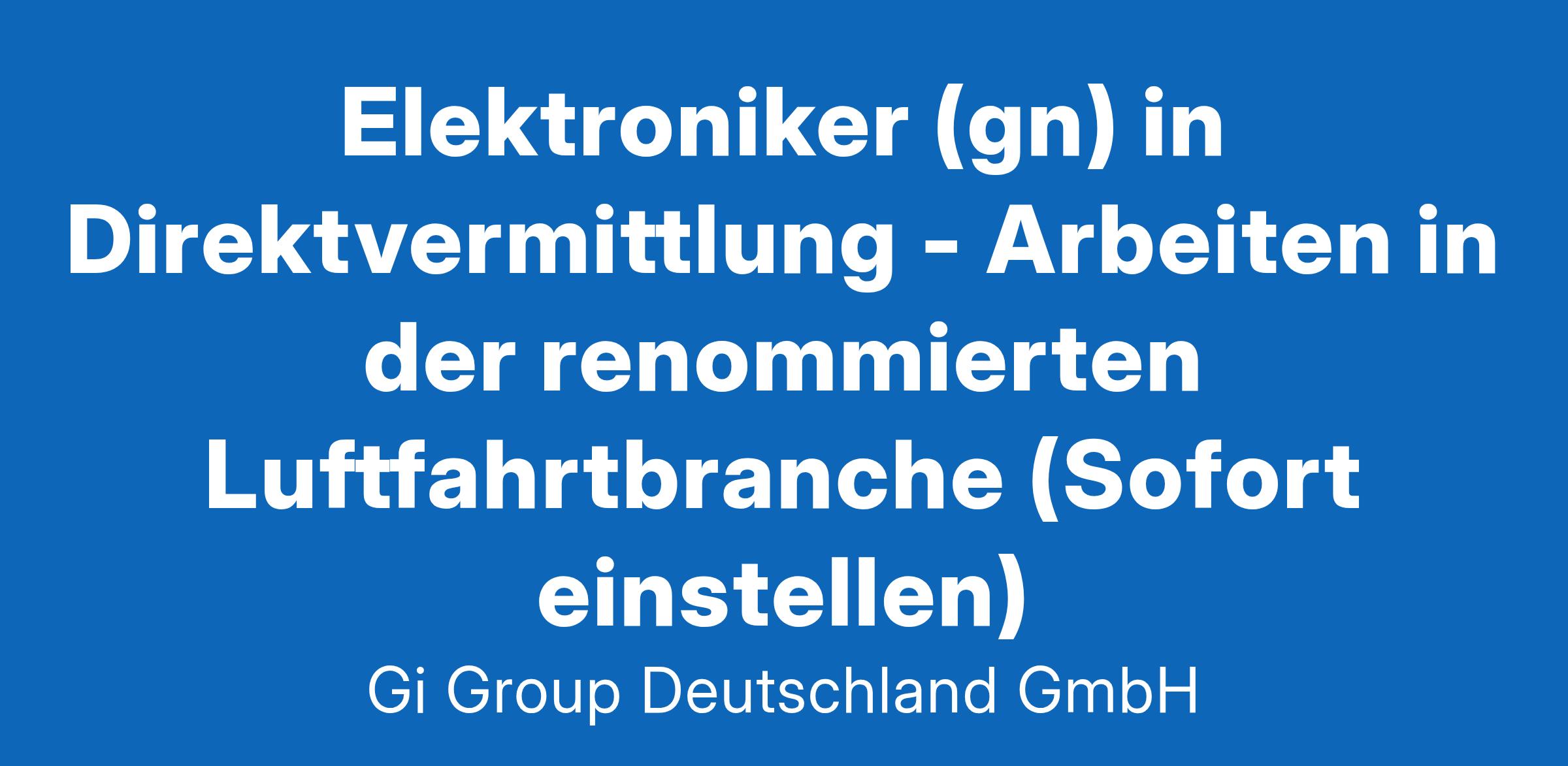 Elektroniker (gn) Luftfahrt ab sofort in Vollzeit in Hamburg in der Direktvermittlung Die Gi Group ist ein international agierender Personaldienstleister mit mehr als 500 Standorten in 40 Ländern. Unser Kunde ist ein renommiertes und zukunftsorientiertes Unternehmen aus der Luftfahrt. Deine Aufgaben Platinenreparatur auf Bauteilebene durchführen und verschiedene Löttechniken anwenden Fehlerdiagnosen an elektronischen Fluggeräten oder Baugruppen unter Anwendung von Messgeräten, Test- und Prüfeinrichtungen durchführen Arbeiten mit technischen Unterlagen und entsprechnde Dokumentation Dein Profil Eine abgeschlossene luftfahrttechnische Berufsausbildung, z.B. als Fluggerätelektroniker Alternativ auch eine abgeschlossene Berufsausbildung in einem elektronischen Beruf, z.B. Elektroniker für Geräte und Systeme, Radio- und Fernsehtechniker, Kommunikationselektroniker,, Funkelektroniker oder eine vergleichbare Qualifikation Du bringst Fachkenntnisse in Analog-/Digital-/Mess- oder Schaltungstechnik mit Bereitschaft zum Erwerb fehlender Qualifikationen sowie zu berufsbezogener Weiterbildung Gute Englischkenntnisse Das bietet unser Kunde Urlaubs- und Weihnachtsgeld sowie eine Gewinnbeteiligung Flexible Arbeitszeiten (Gleitzeit, keine Schichtarbeit) und 30 Tage Urlaub Flugvergünstigungen, Einkaufsrabatte in Geschäften und Jobrad-Leasing Kostenloses Parken, betriebliche Altersvorsorge und Verpflegungszuschuss für die Kantine Deine Bewerbung Für Deine Bewerbung als Elektroniker klicke bitte einfach auf „Jetzt bewerben“. Dort kannst Du Deine Kontaktdaten eingeben sowie Deinen Lebenslauf und Deine Bewerbungsunterlagen hochladen. Du benötigst dafür nur ca. 1 Minute. Dein zuständiger Personaldisponent wird sich bei Dir schnellstmöglich melden. Gerne kannst Du uns auch Deine Bewerbungsunterlagen per E-Mail zusenden. Wir freuen uns auf Deine Bewerbung Elektroniker in der Luftfahrt! Unsere Stellenangebote richten sich an Arbeitssuchende jeglichen Geschlechts. (gn) = geschlechtsneutral. Kontakt Gi Group Recruiting Team