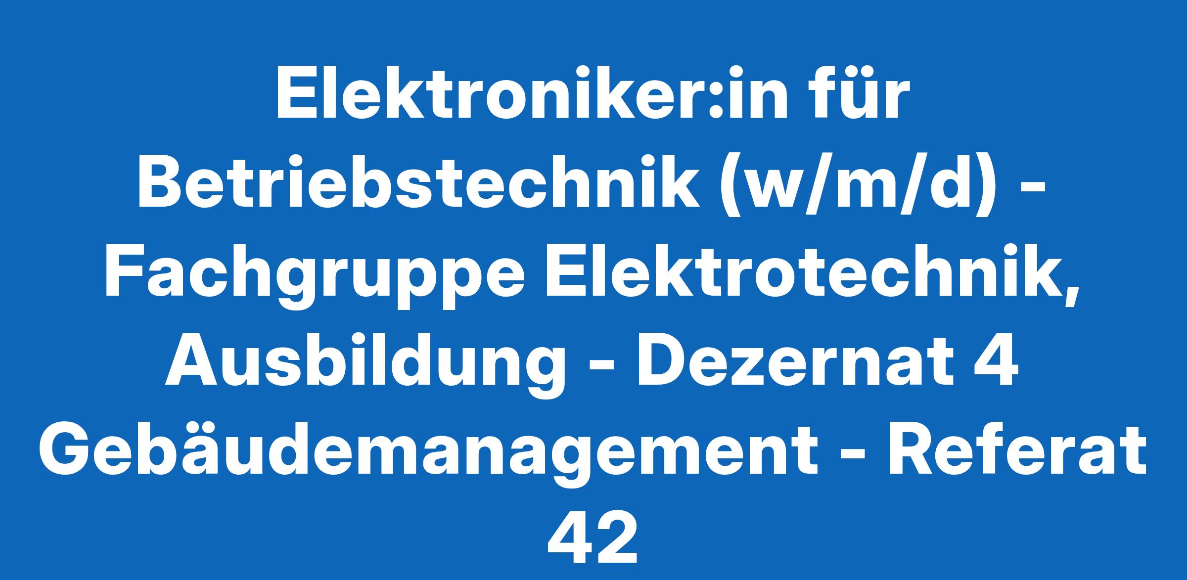 Elektroniker:in für Betriebstechnik (w/m/d) - Fachgruppe Elektrotechnik, Ausbildung - Dezernat 4 Gebäudemanagement - Referat 42 Gebäudebetrieb/Instandhaltung